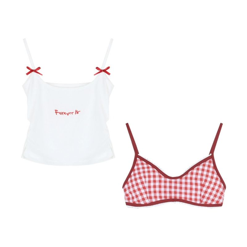 kumikumi checked letter print two-piece strap set