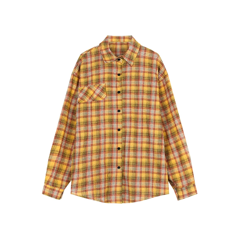 | nameOriginal | kumikumi yellow casual mid-length plaid shirt |