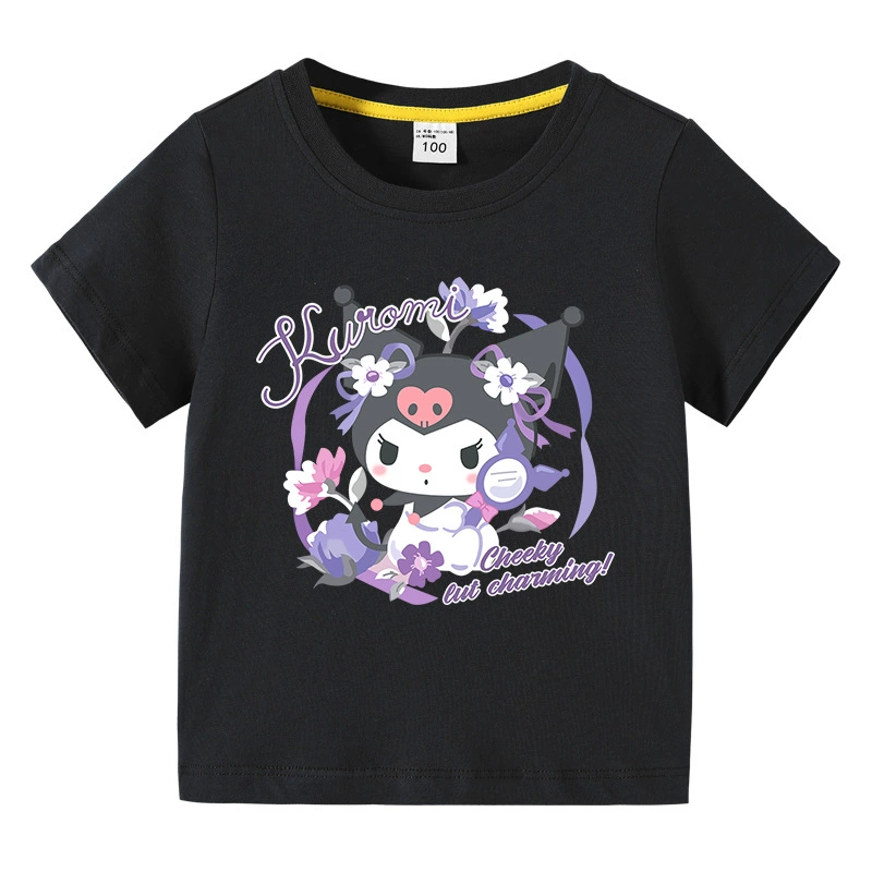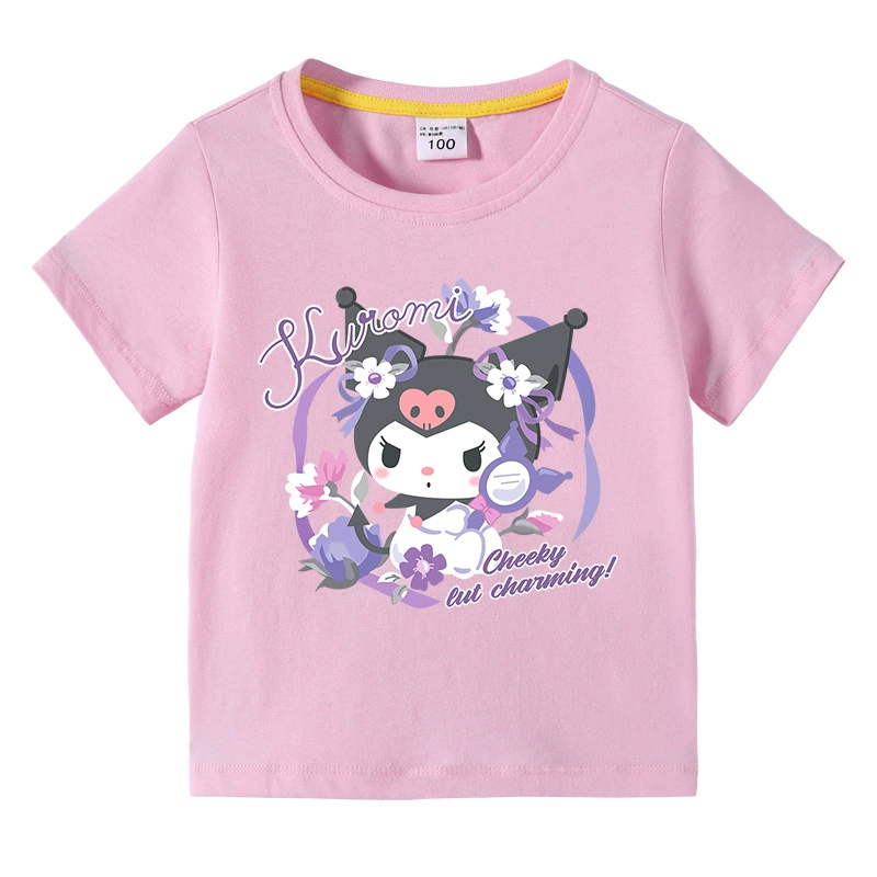 | nameOriginal | Kuromi girls short-sleeved T-shirt 2023 summer new style children's tops baby 4 pure cotton T-shirt 6 years old 8 |