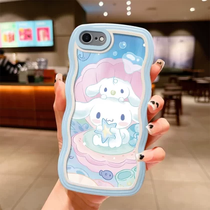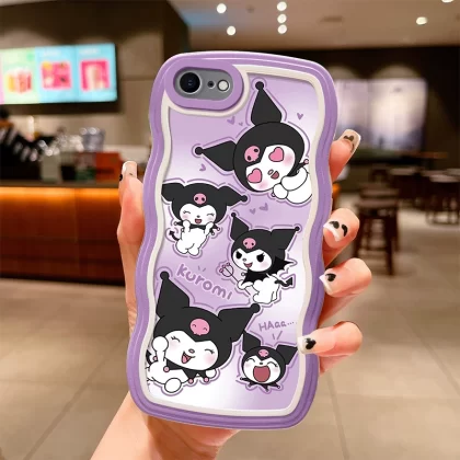 Kuromi is suitable for Apple 8plus mobile phone case, cinnamon dog transparent cartoon se2 wave pattern silicone soft edge anti-fall iPhone7 protective cover new men and women creative personality all-inclusive lens 6sp