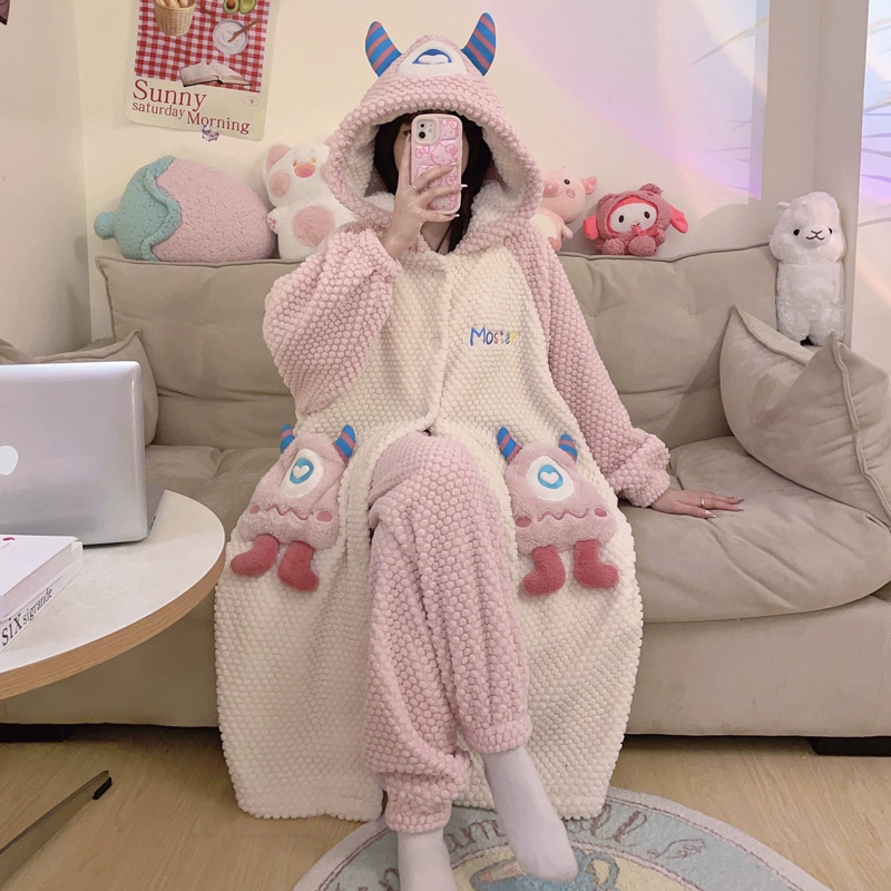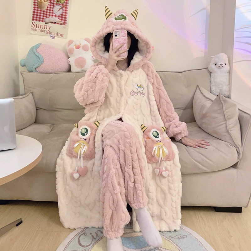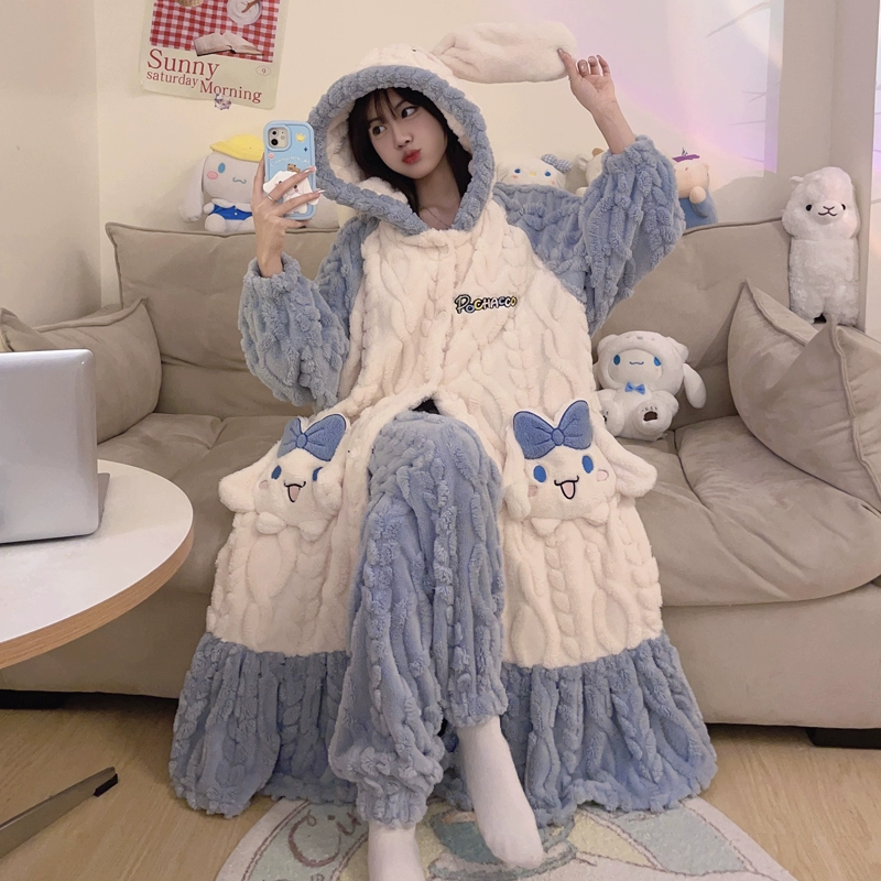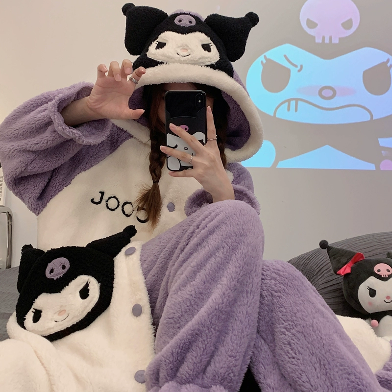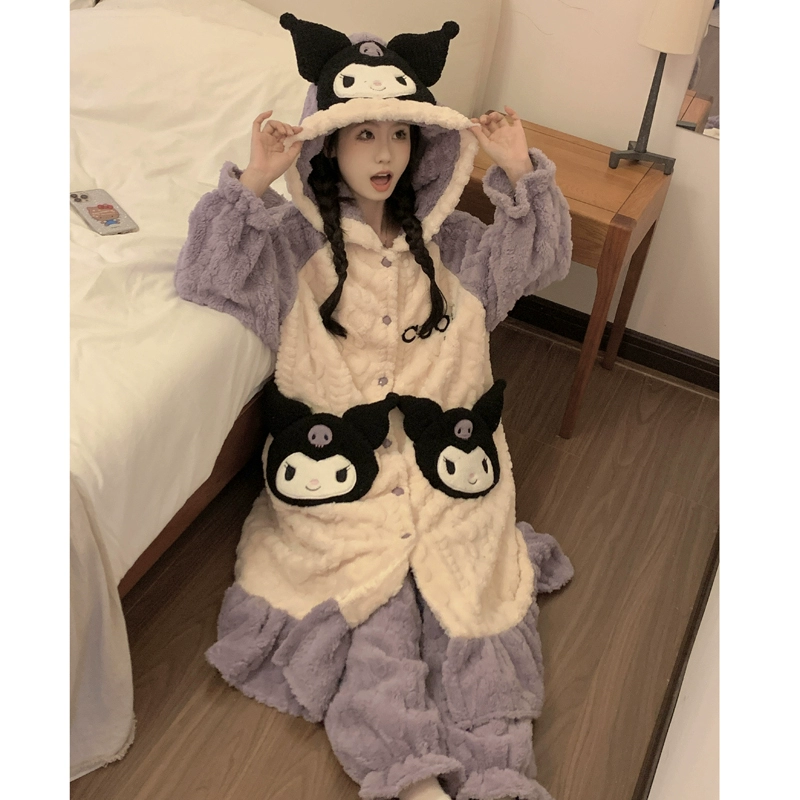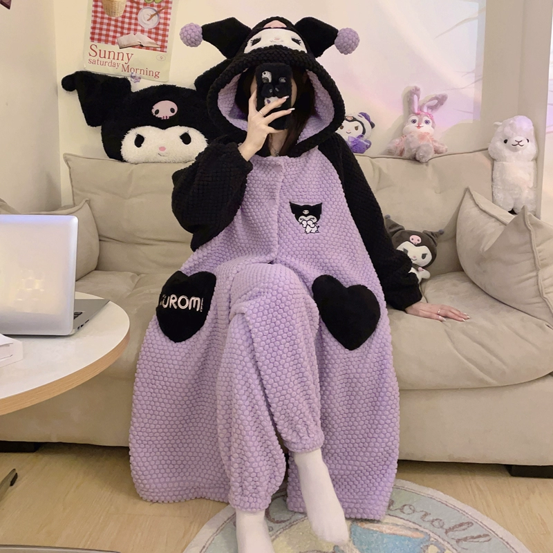 | nameOriginal | Kuromi Pajamas Women's Autumn and Winter Coral Velvet Plus Velvet Thickened Flannel New Nightgown Long Home Clothes Set |
