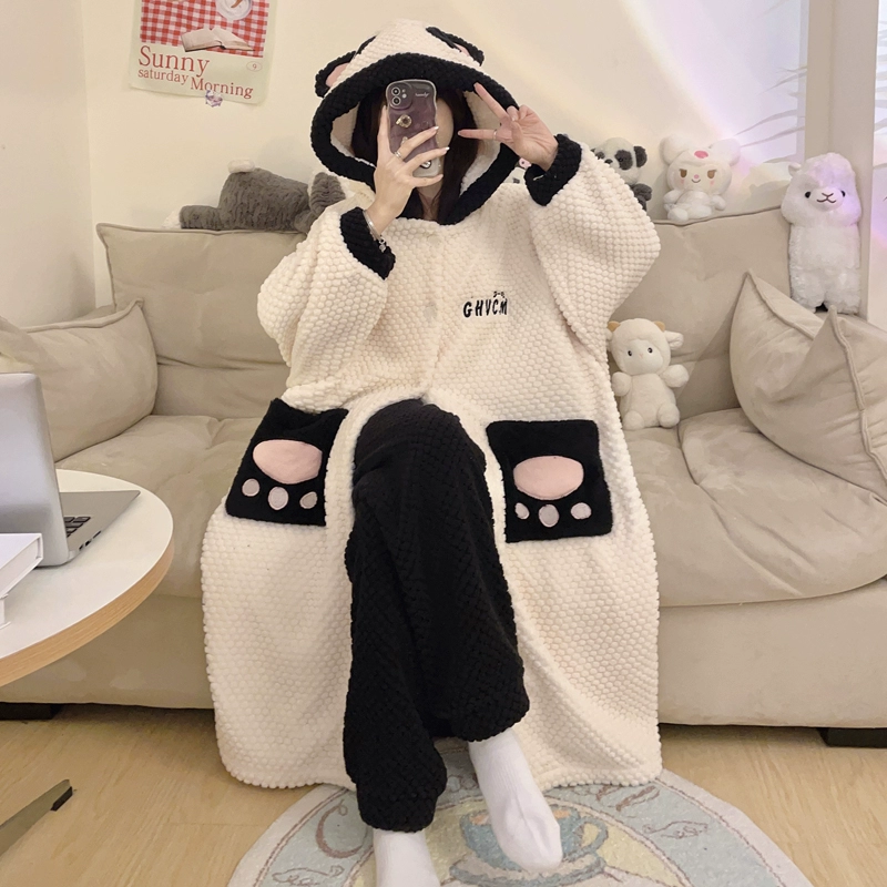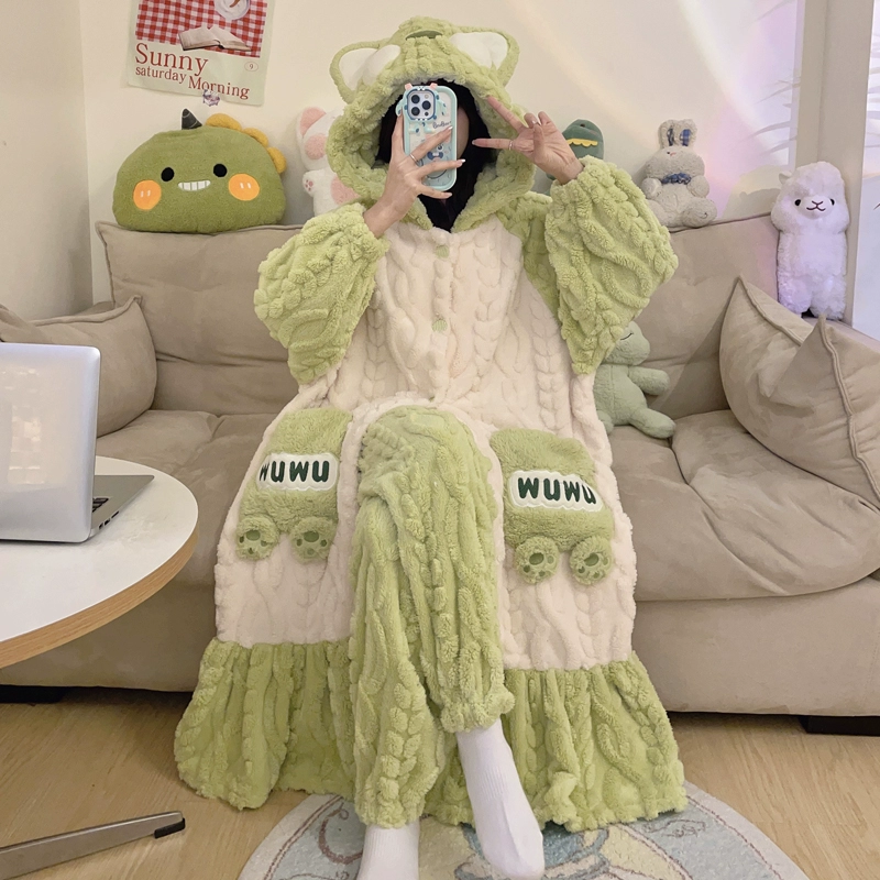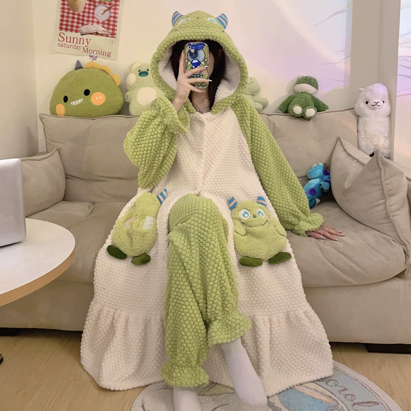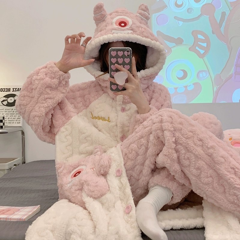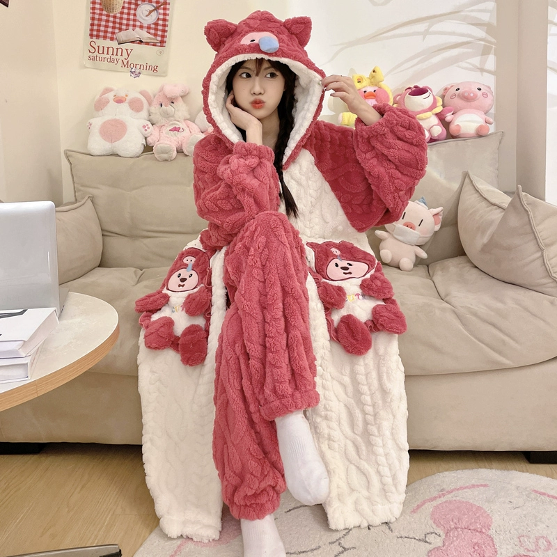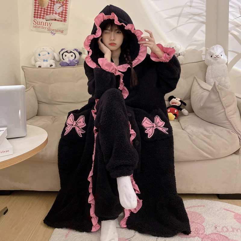 | nameOriginal | Kuromi Pajamas Women's Autumn and Winter Coral Velvet Plus Velvet Thickened Flannel New Nightgown Long Home Clothes Set |