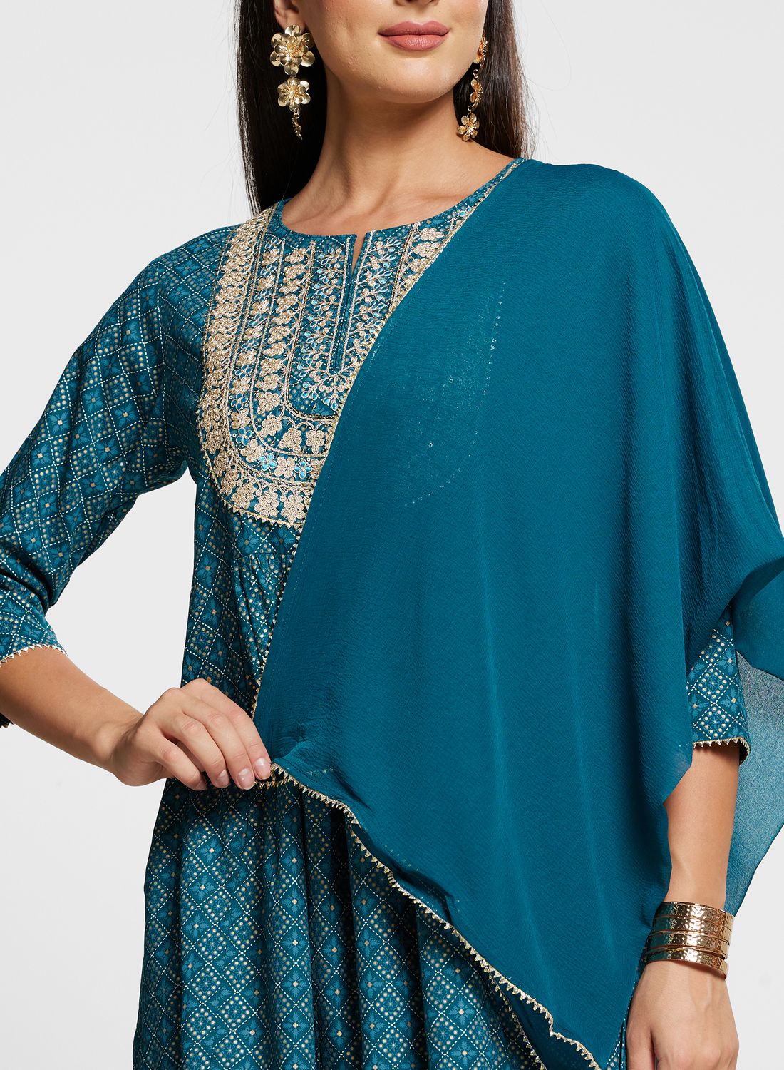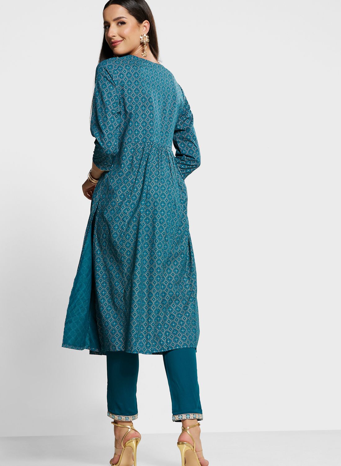 | nameOriginal | Embroidered Tiered Hem Kurti & Pants Set |
