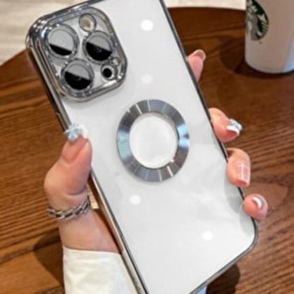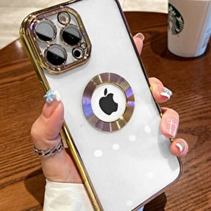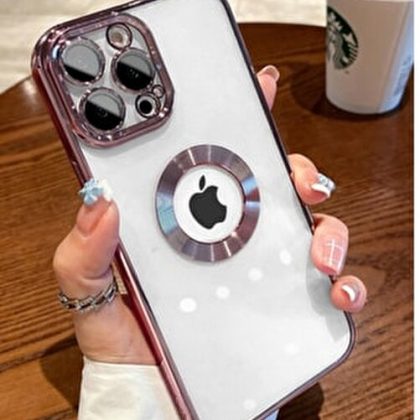 iPhone 13 Pro Max (6.7 inch) Case Luxury Logo Detailed Edges Color Camera Protected Case Black Camera lens protected logo part open back transparent sides details black