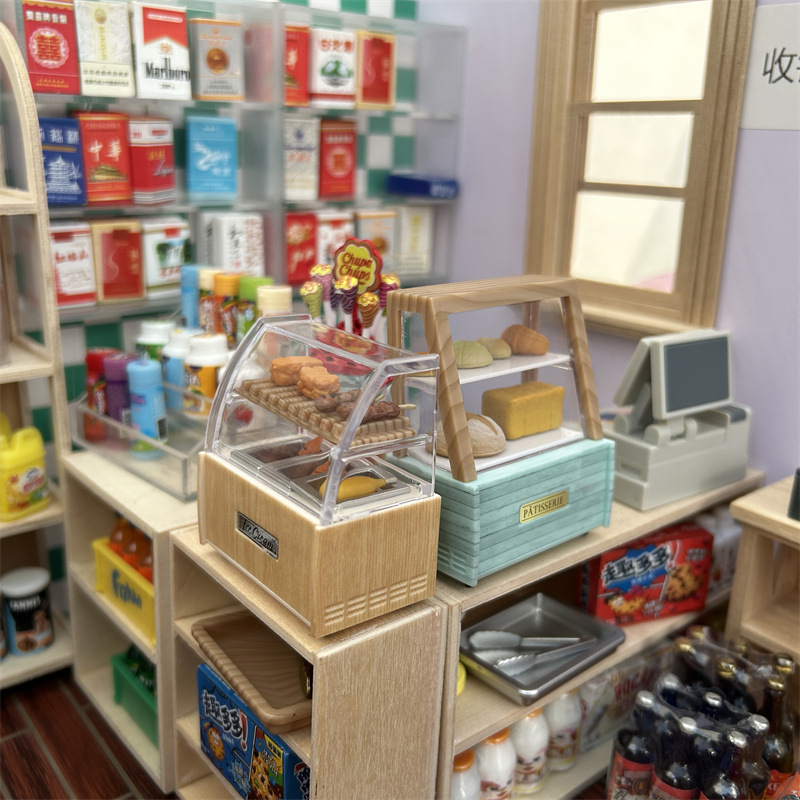 | nameOriginal | Kwantung cooking machine model mini bread cabinet miniature doll house supermarket convenience store bakery scene decoration shooting |