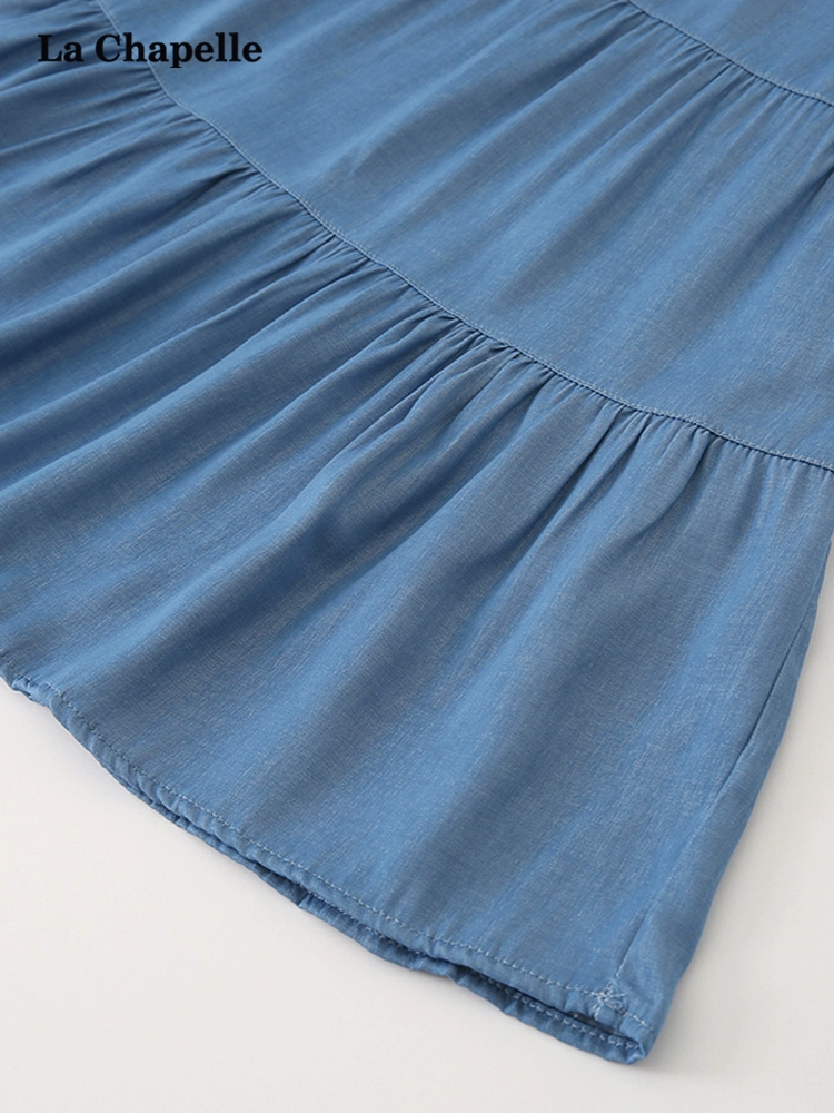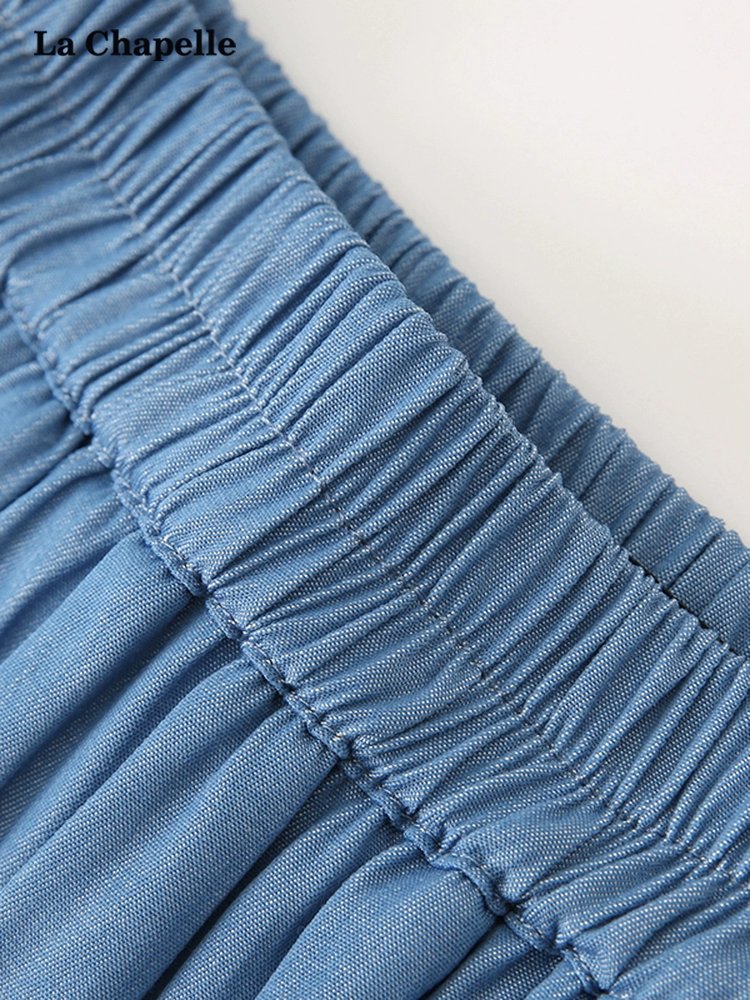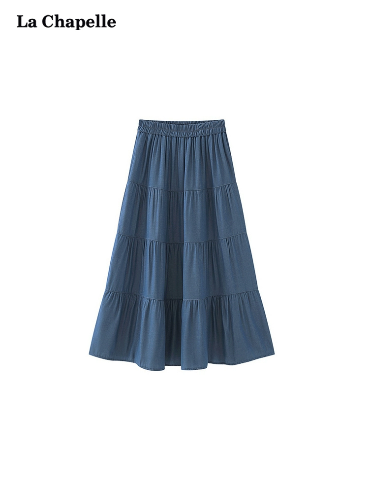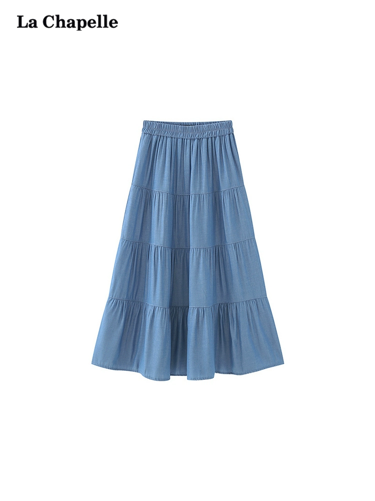 La Chapelle/La Chapelle elastic waist denim skirt Korean style high waist mid-length a-line skirt umbrella skirt