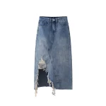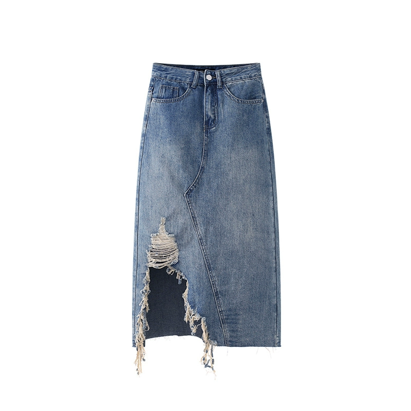 | nameOriginal | La Chapelle/La Chapelle irregular raw edge denim skirt women's retro style mid-length skirt summer new style |
