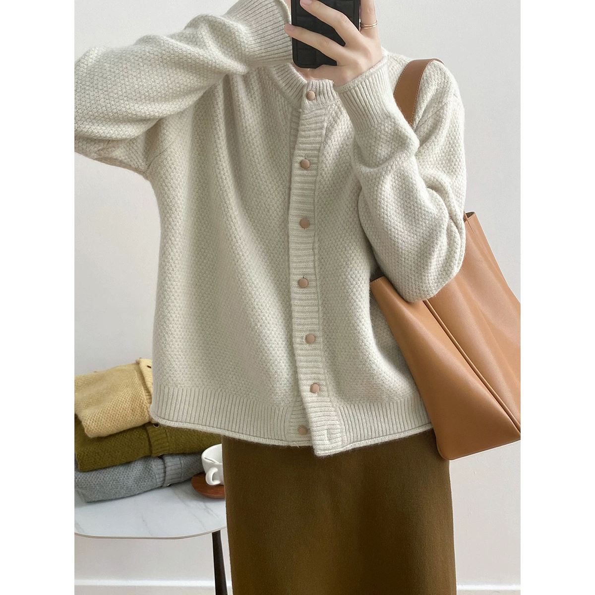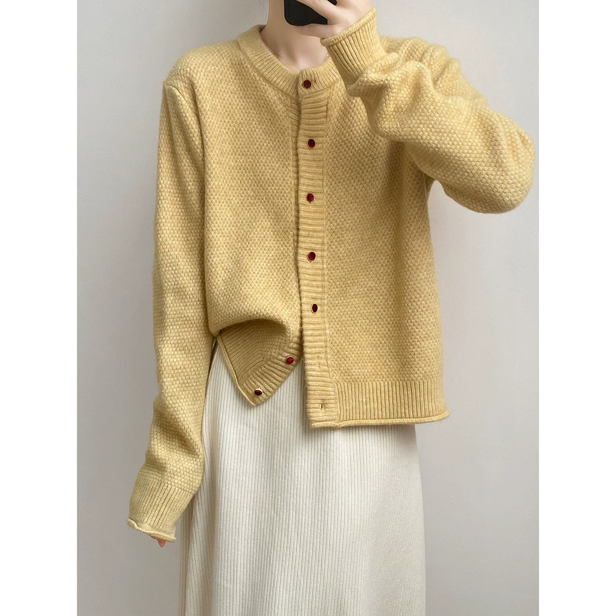 | nameOriginal | La Chapelle round neck knitted simple cardigan sweater |