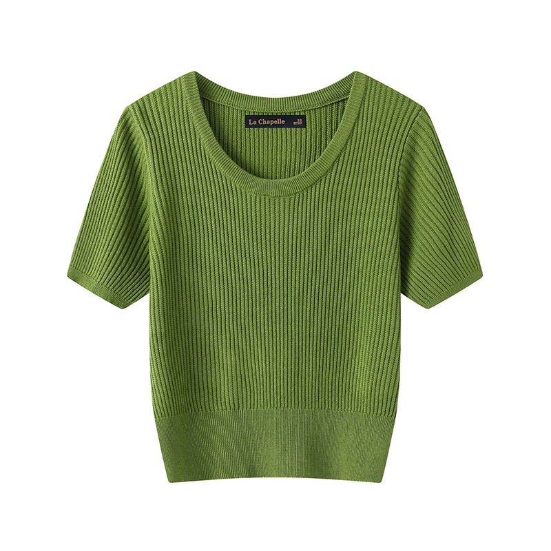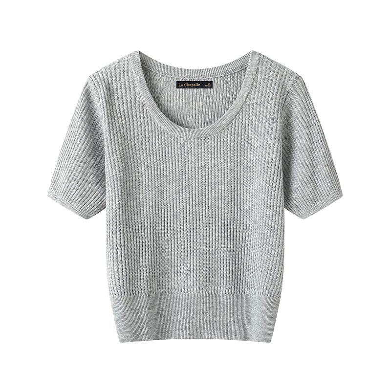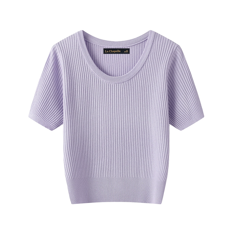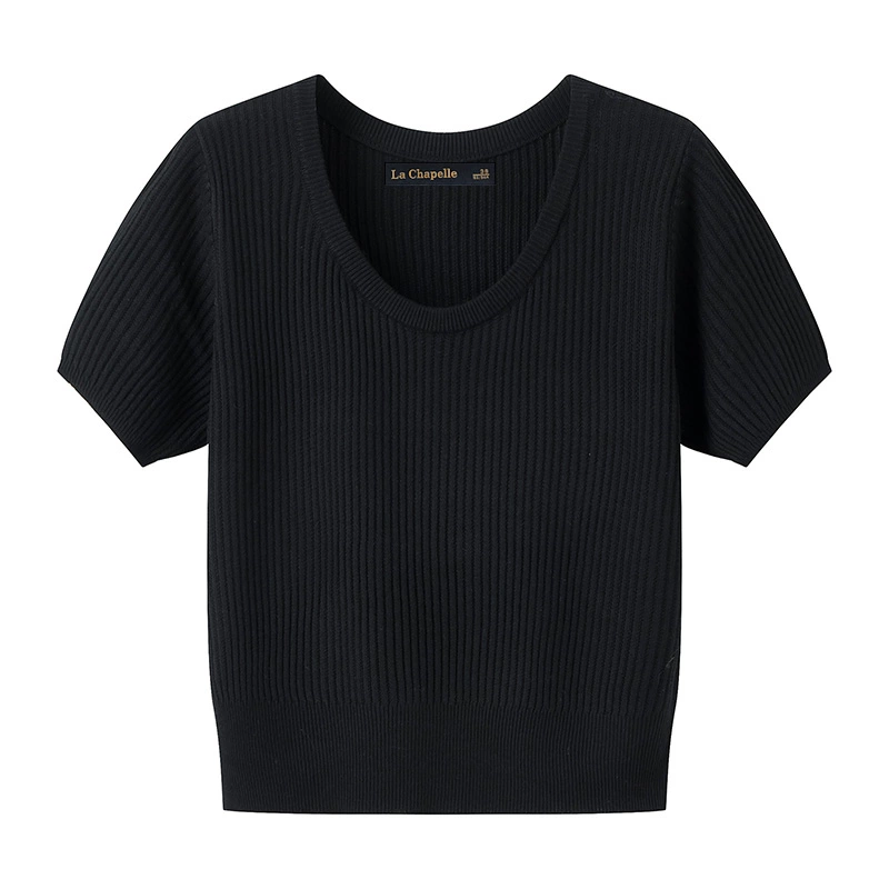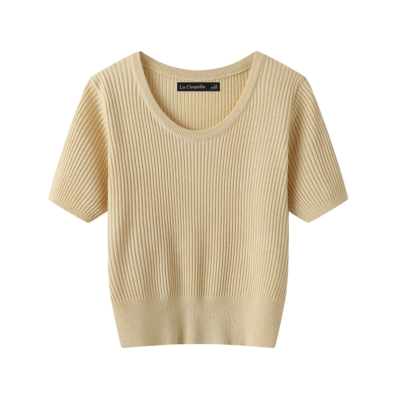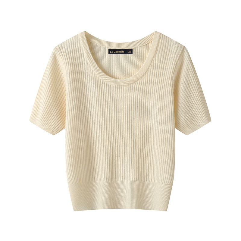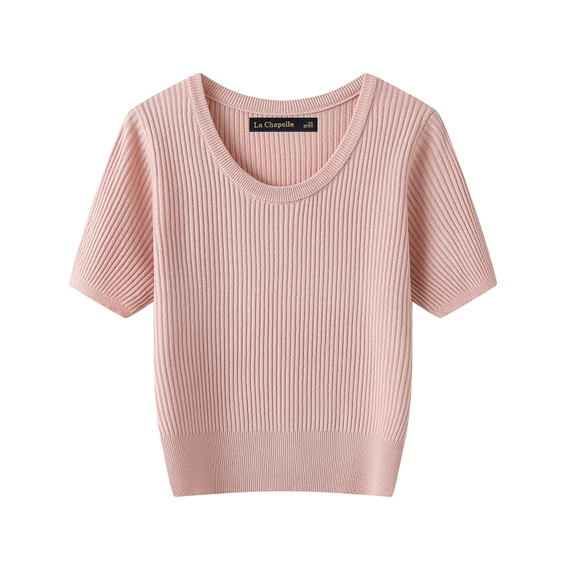 La Chapelle solid color versatile thin short-sleeved knitted sweater