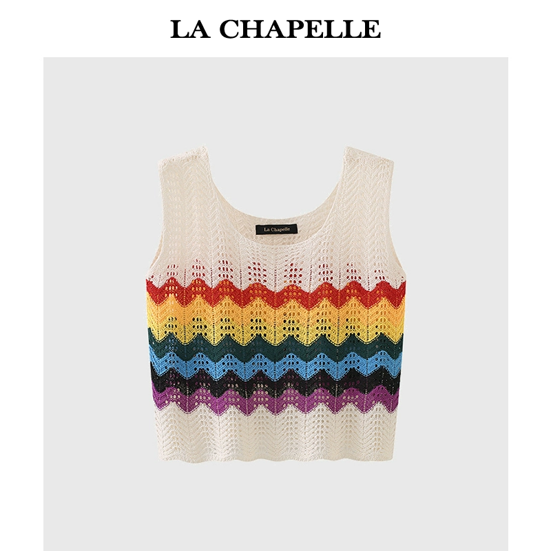 La Chapelle striped hollow camisole knitted vest