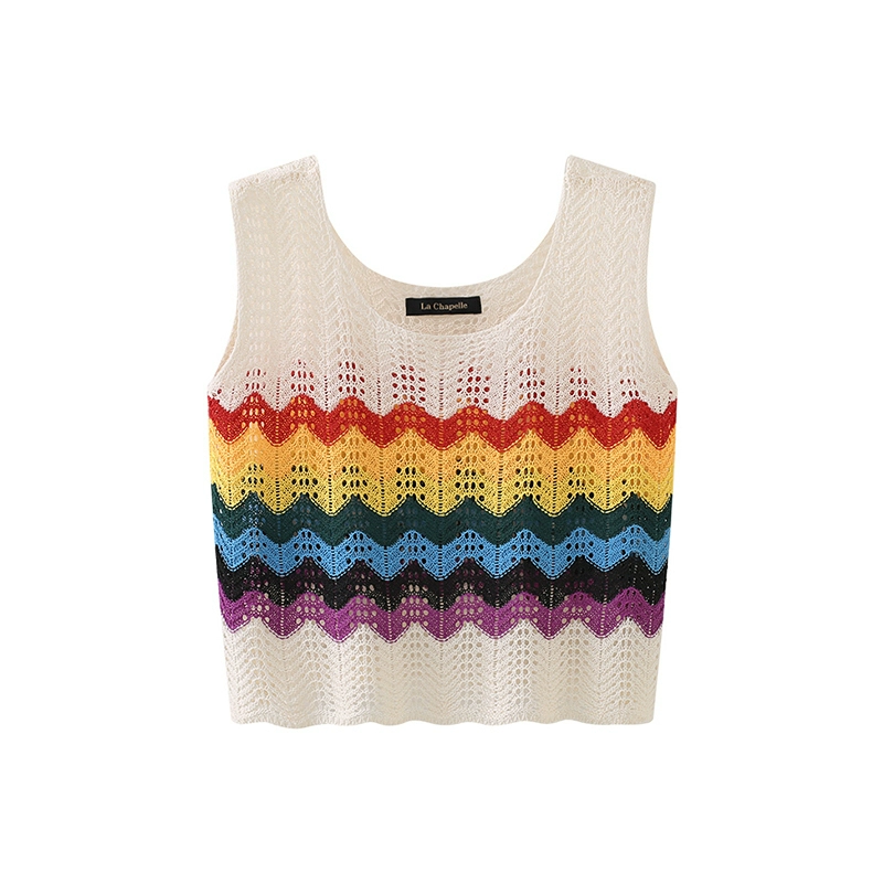 La Chapelle striped hollow camisole knitted vest