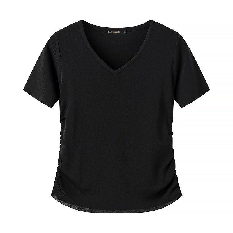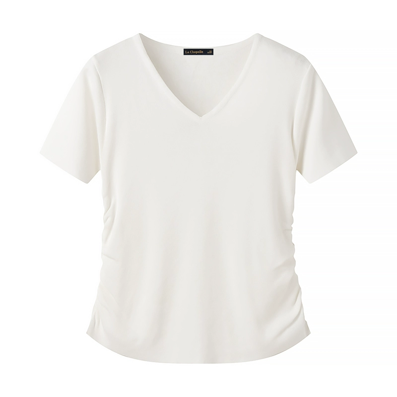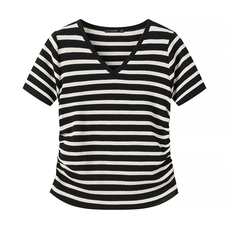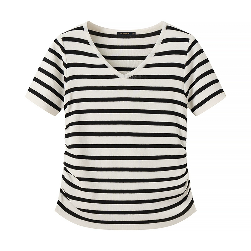 La Chapelle striped right shoulder slim pleated short sleeves