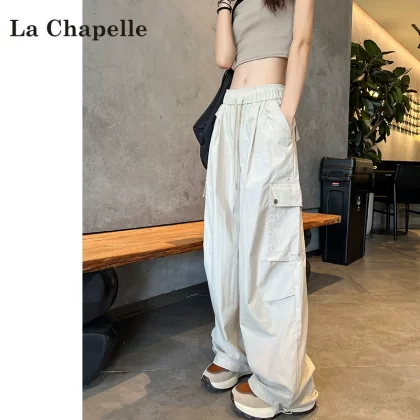 La Chapelle white ice silk overalls women's summer thin 2024 new wide-leg American quick-drying paratrooper pants