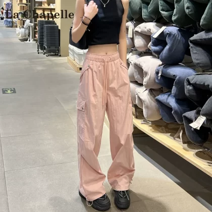 Lathabel white ice silk worker pants female summer thin 2024 new wide -leg American fast -drying paratrooper pants