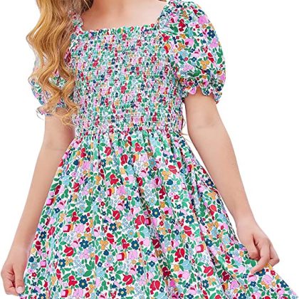 | nameOriginal | LaBeca Girls Square Neck Ruffle Puff Sleeve Floral Print Smocked Casual Dress for 5-12 Years |