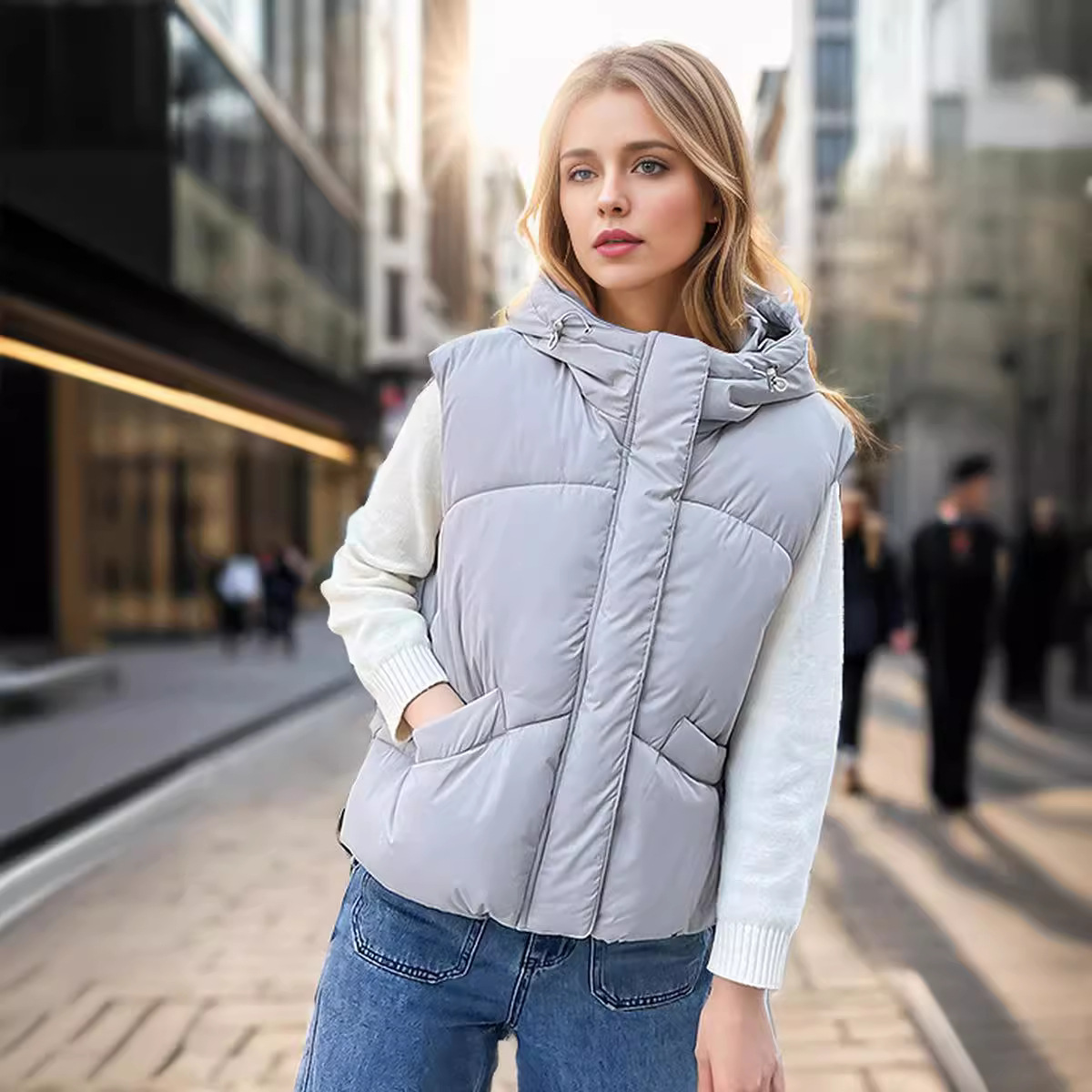 | nameOriginal | Labelable TEMU European Large Pocket Down Cotton Vest Women's Short A- line Hooded Casual Warm Jacket |