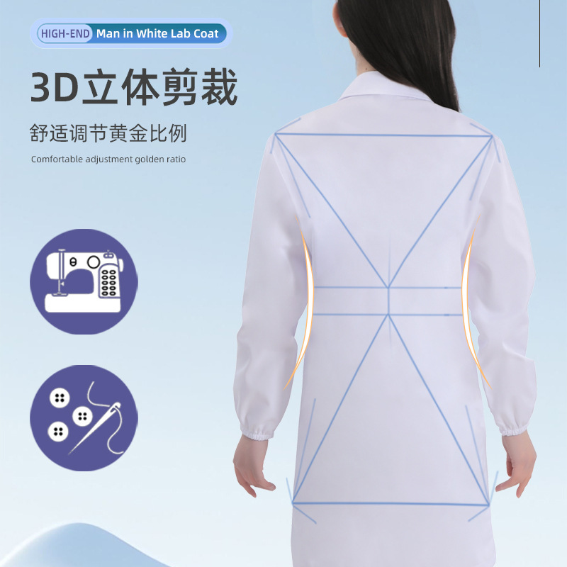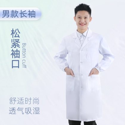 Laboratory white coat men's and women's work clothes wholesale doctor long sleeve white coat experimental student factory polyester cotton