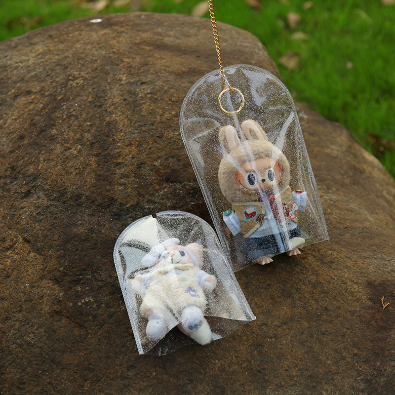 | nameOriginal | labubu doll coat pull cloth cloth dust cover protective cover raincoat go out walking baby bag pvc transparent bag macaron |