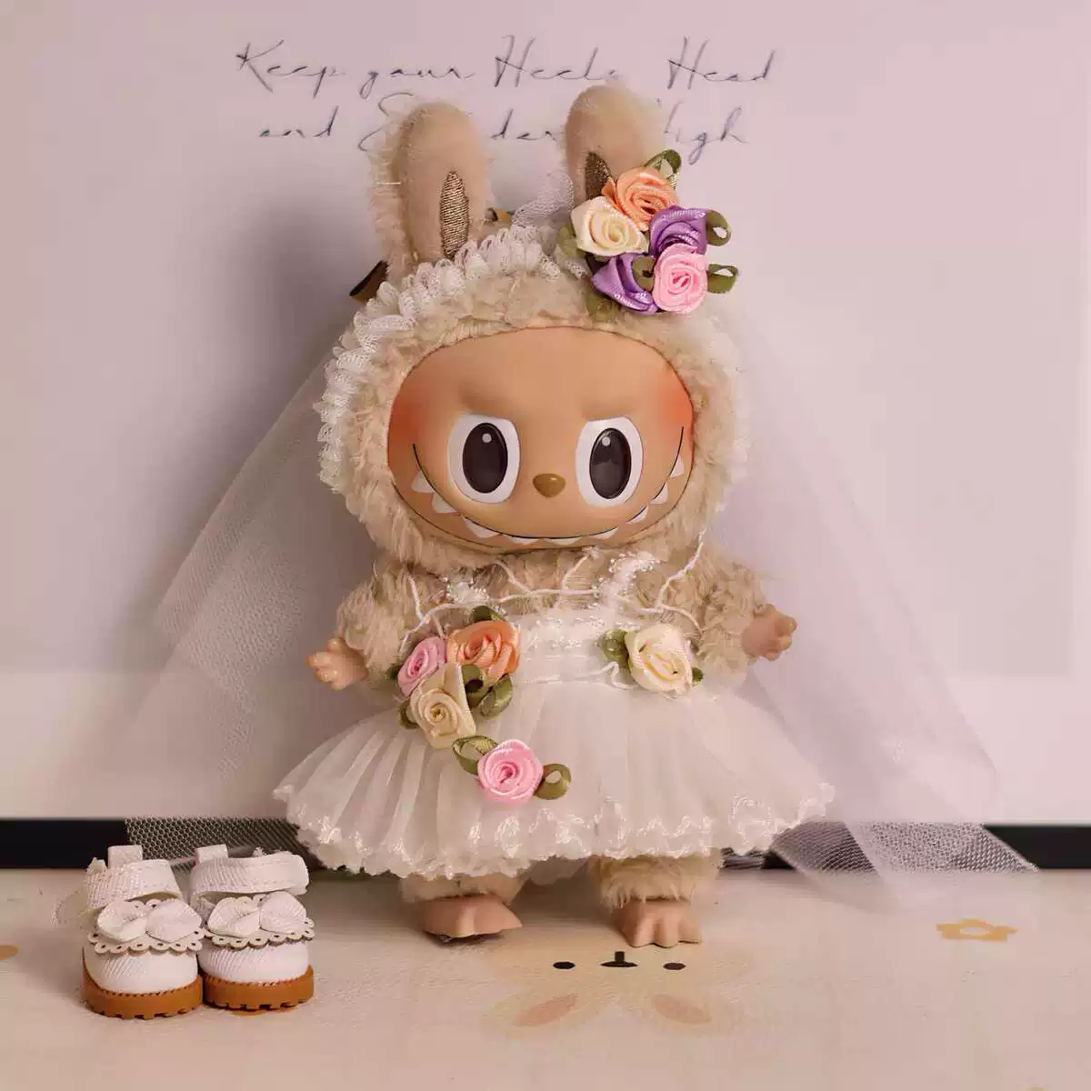 | nameOriginal | Labubu vinyl clothes plush doll Labubu blind box bubble mart 17cm pendant flower fairy skirt replacement |