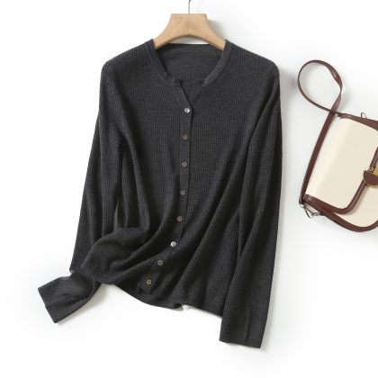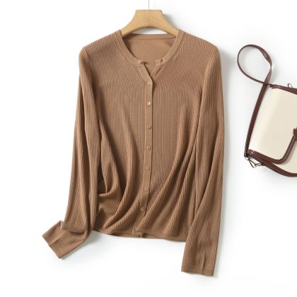 LABULL Women’s Solid Color Crewneck Cardigan All-match Casual Comfortable BN685