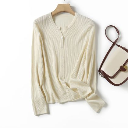 LABULL Women's Solid Color Crewneck Cardigan All-match Casual Comfortable BN685