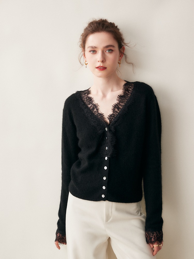 | nameOriginal | Lace 2023 cashmere cardigan women's V-neck short sweater coat knitted wool cardigan long sleeve autumn and winter |
