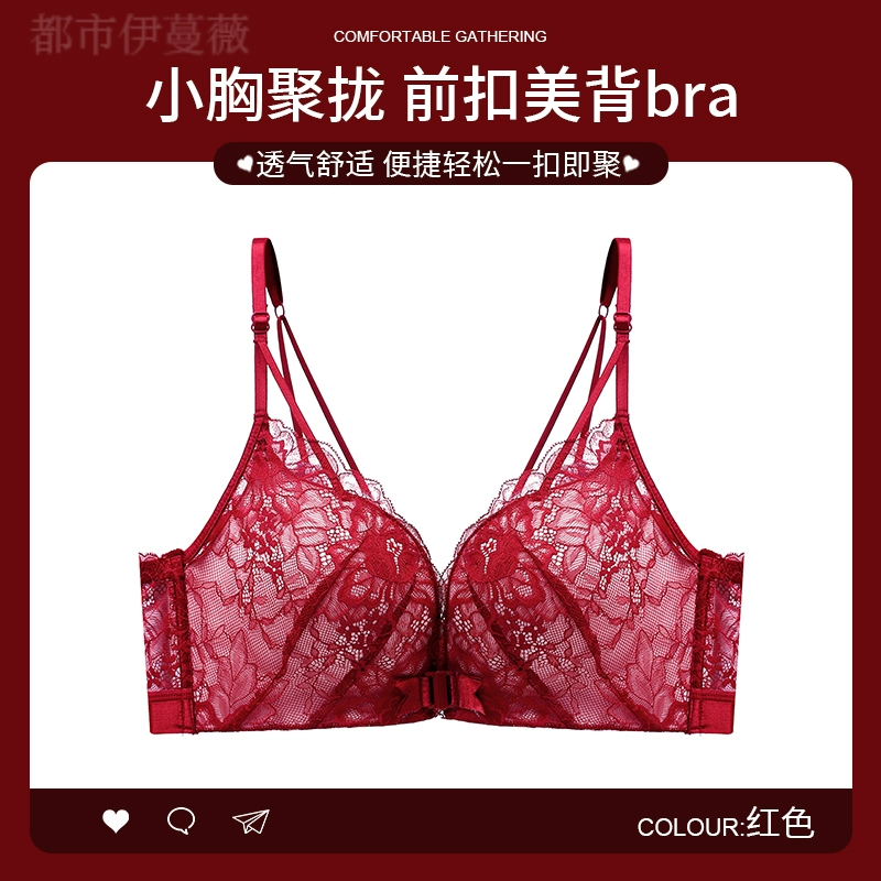 | nameOriginal | Lace beautiful back bra for women with small breasts gathered 2024 new popular sexy suit front button bra without steel ring summer |