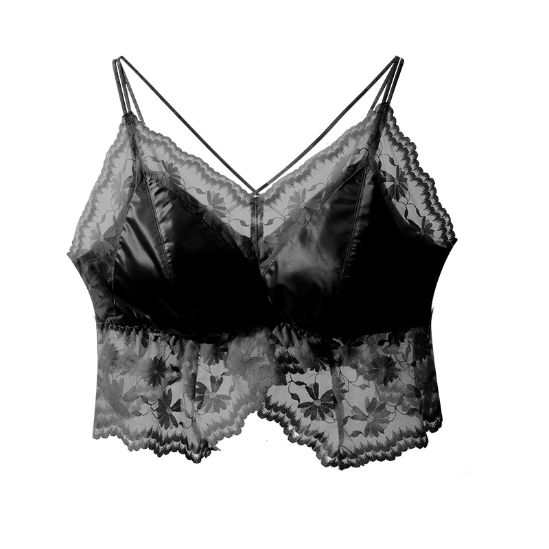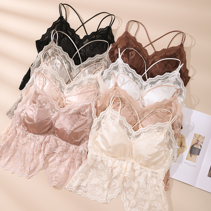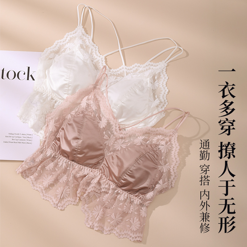 Lace Beautiful Back Vest Women's Spring and Summer Bra with Bra One-piece Cup Wrapped Chest Tube Top Sling Underwear Thin Shoulder Strap Big Chest