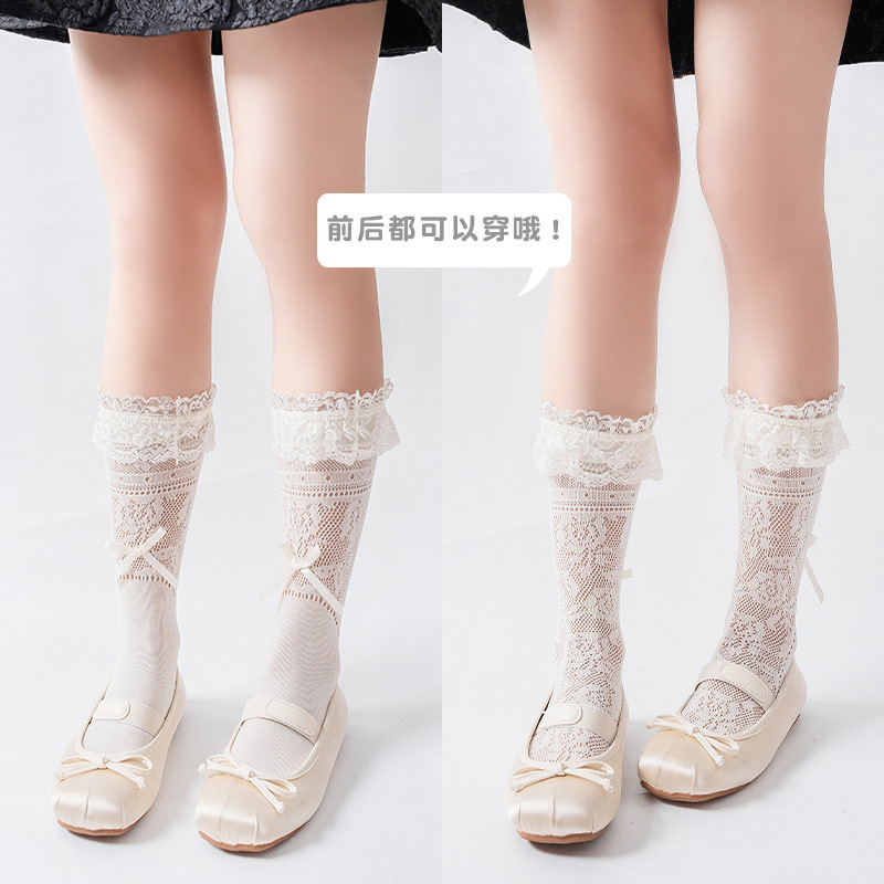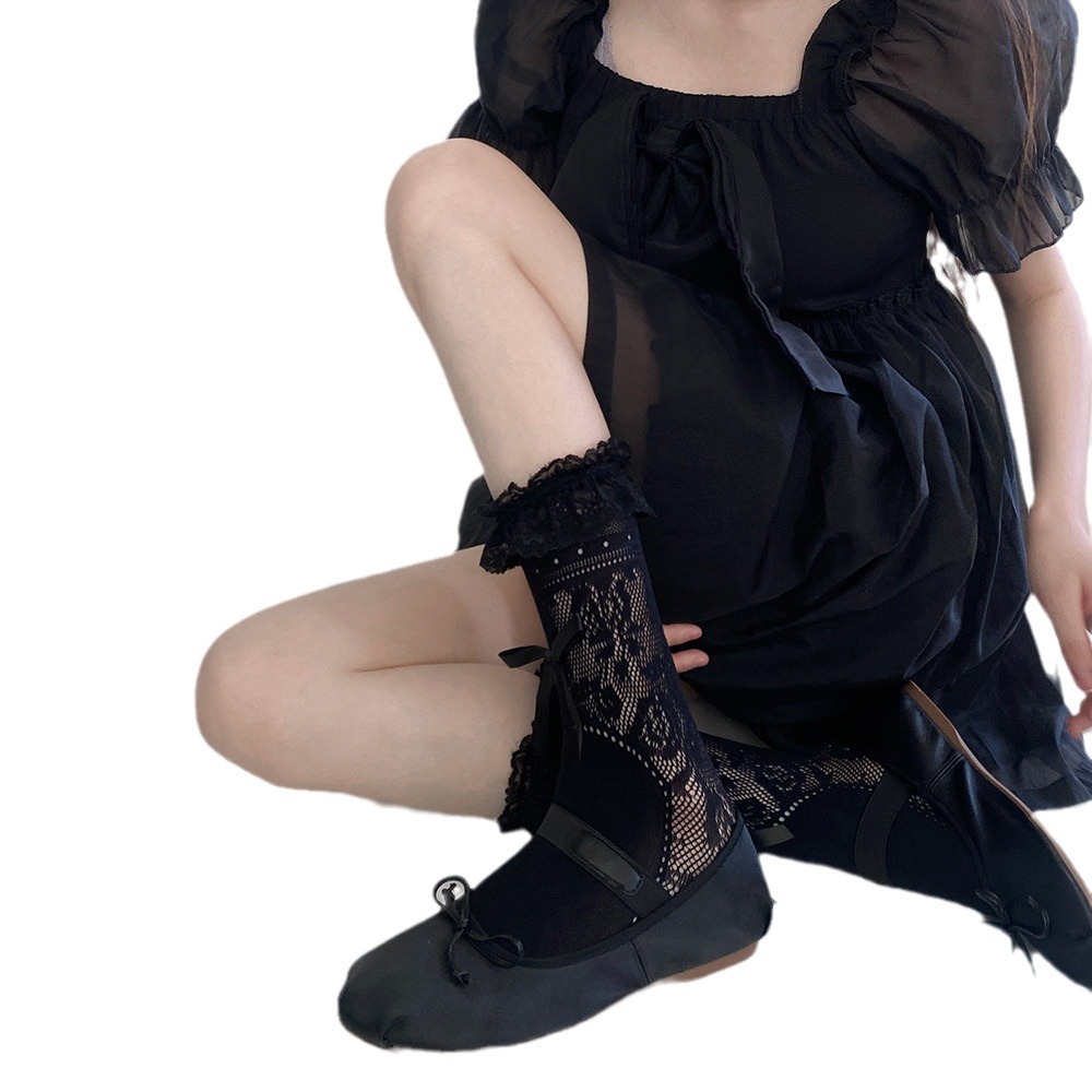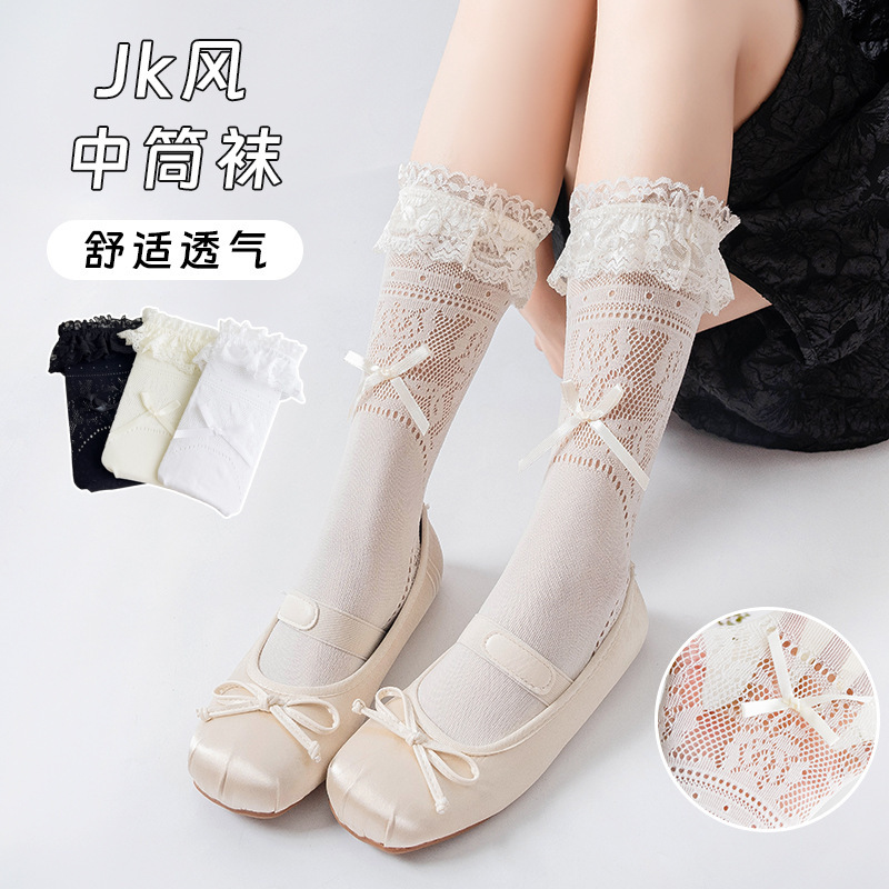 | nameOriginal | Lace calf socks spring and summer Lolita hollow-out mid-calf socks bow ballet style Lolita socks thin |