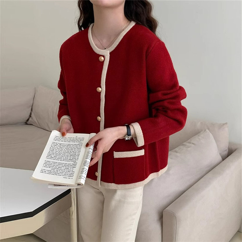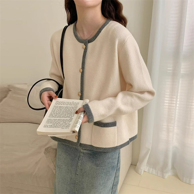 | nameOriginal | Lace contrast color round neck single-breasted simple elegant knitted cardigan for women Spring and Autumn New Korean style age-reducing sweater coat |