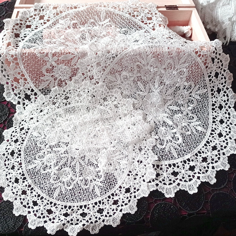 | nameOriginal | Lace dishes, bowls, fabric decorations, props, cups and mats |