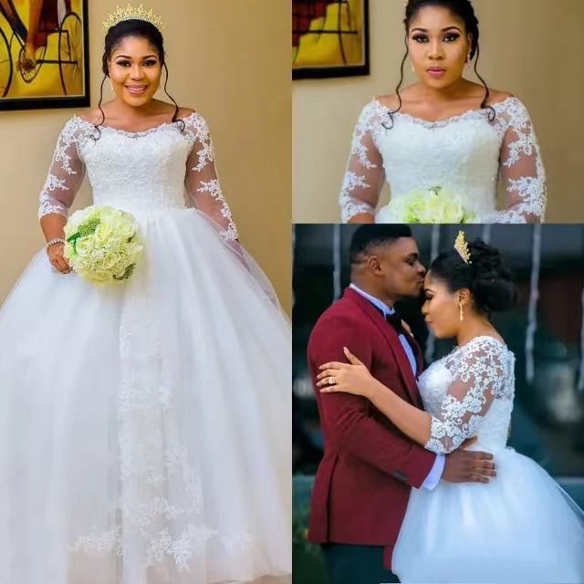 Lace European and American wedding dress 2024 new spring and summer new long elegant white adult mid-waist Princess long sleeve wedding dress