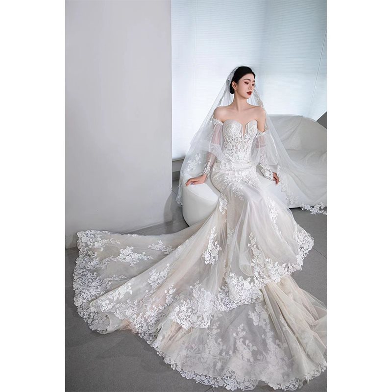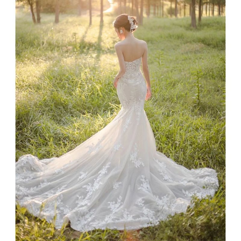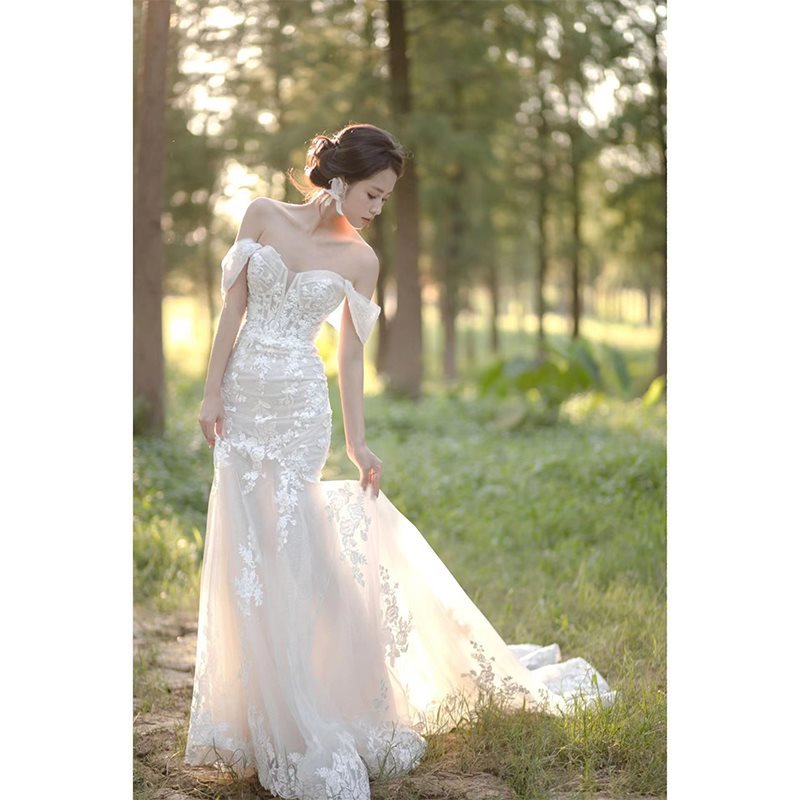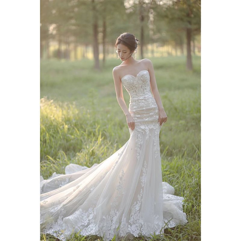 | nameOriginal | Lace Fishtail Wedding Dress 2024 New Strapless Out-going Light Yarn Elegant Travel Shooting Outdoor Lawn Wedding Tail Dress |