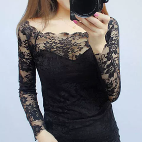 | nameOriginal | Lace long-sleeved transparent sexy one-shoulder bottoming shirt |