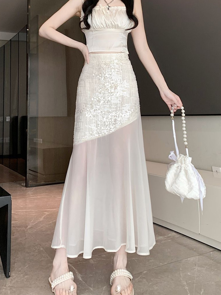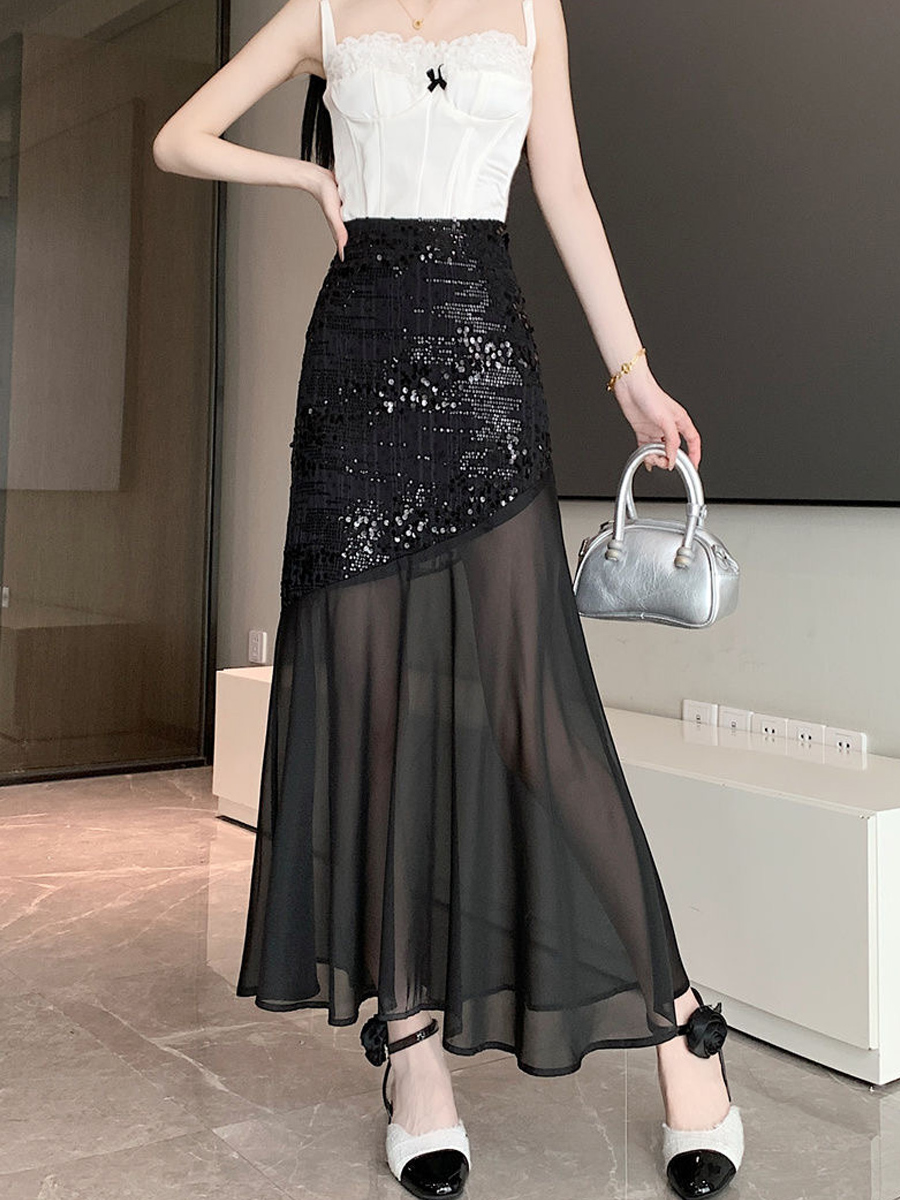 | nameOriginal | Lace mesh stitching fishtail summer long dress with sequins |
