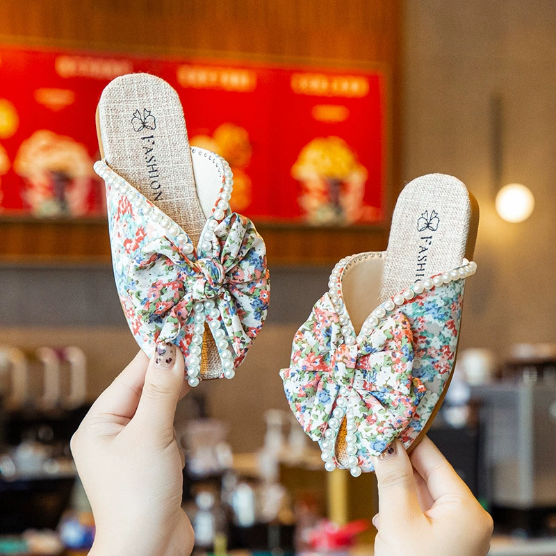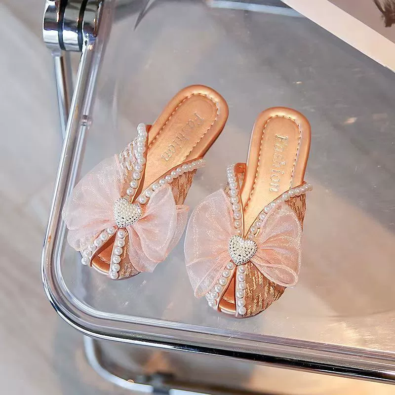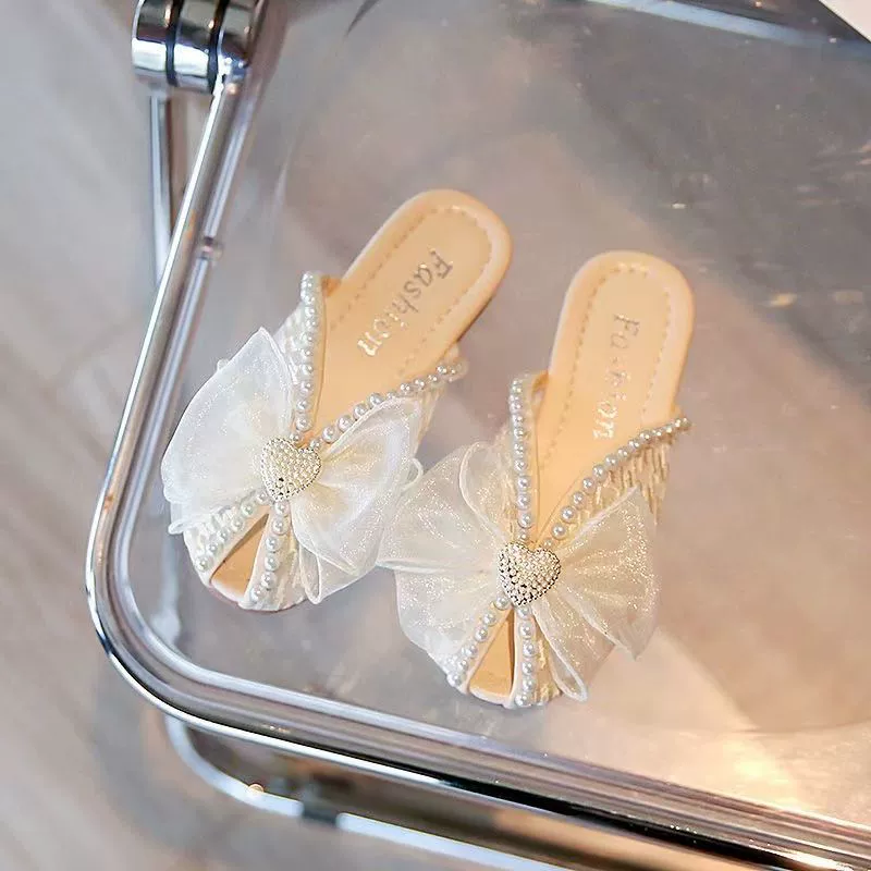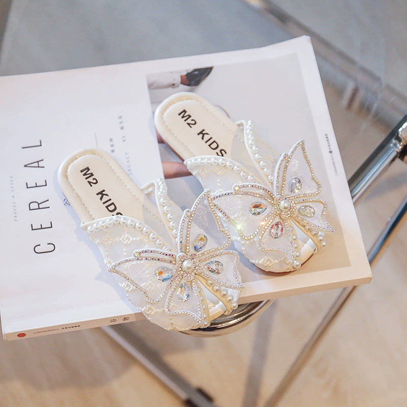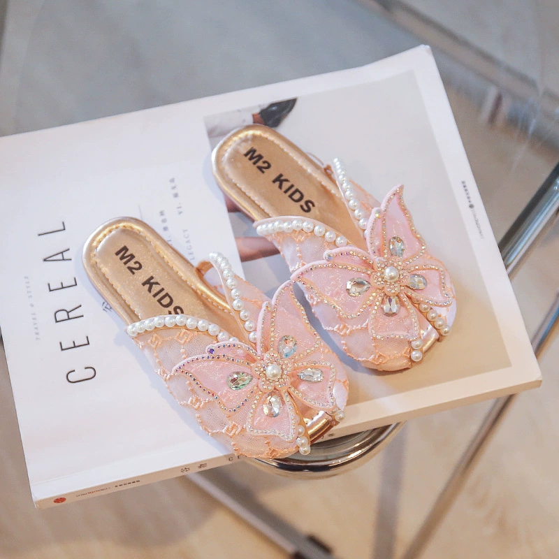 | nameOriginal | Lace mesh summer pearl flat heel home slippers |
