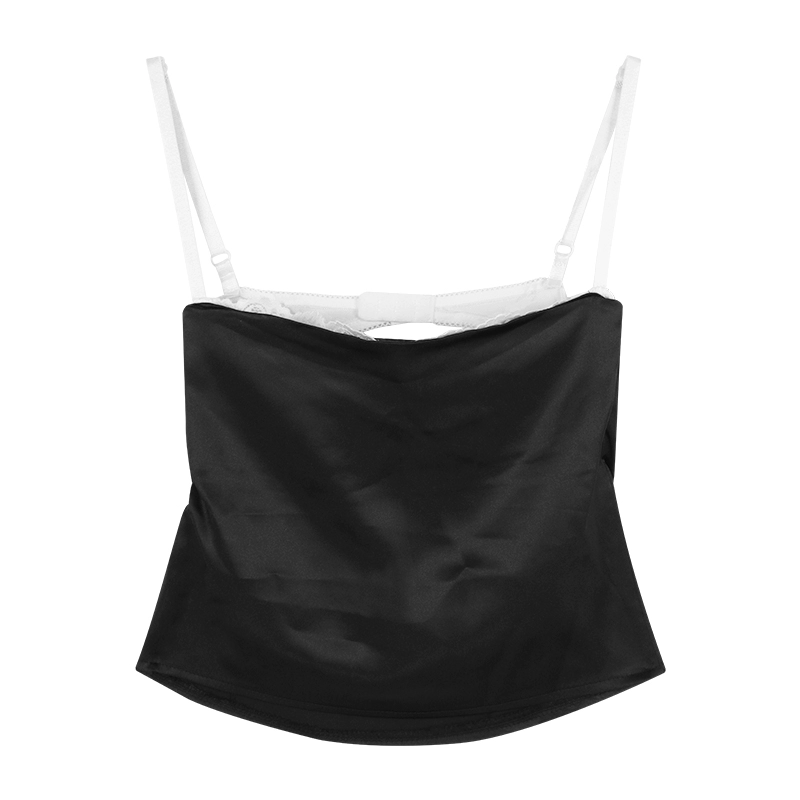 Lace paneled backless slim fit outer top satin
