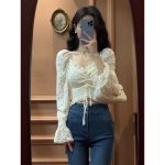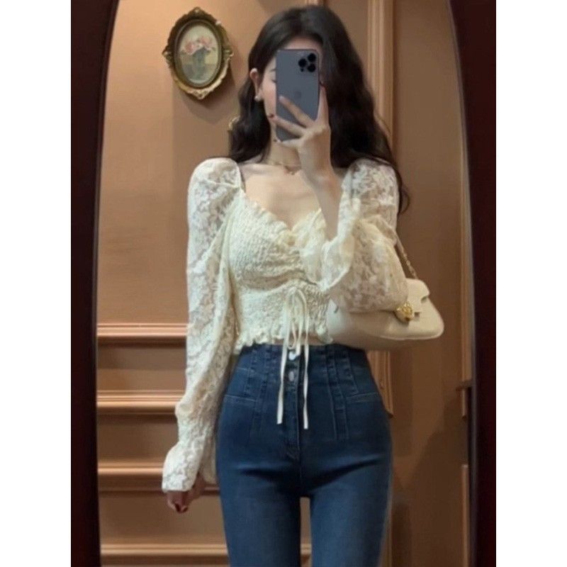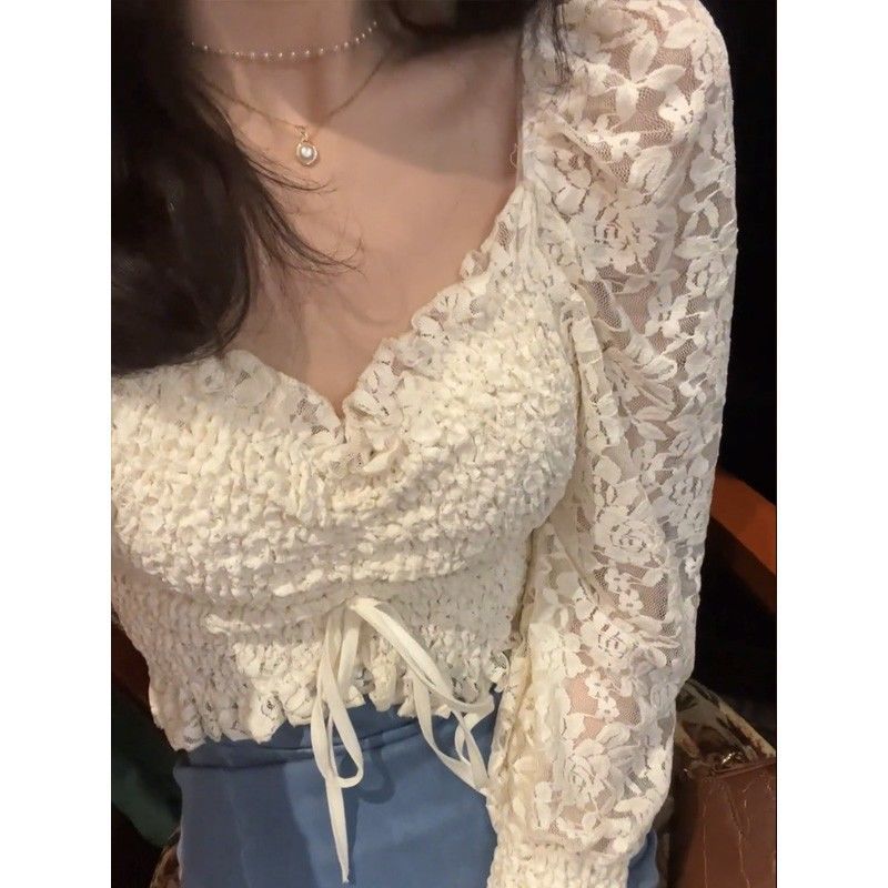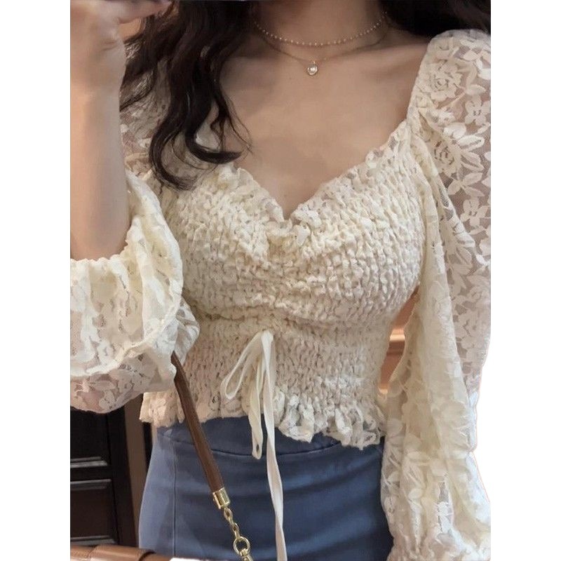 Lace Shirt Spring Women’s 2024 New Style Western Style Beautiful Small Shirt Design Niche French Chic Short Top