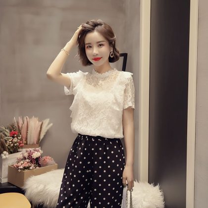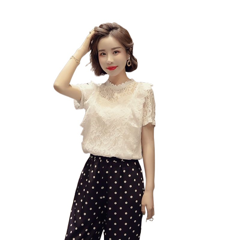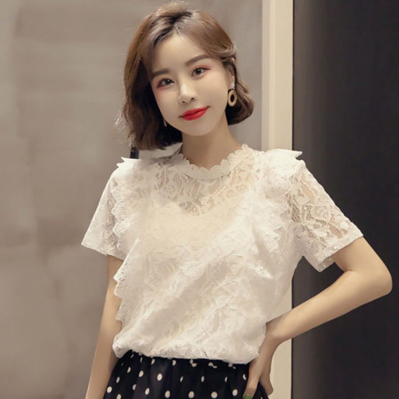 | nameOriginal | Lace Shirt Women's Summer 2024 New Korean-style Fairy Western-style Short-sleeved Hollow Shirt Elegant plus size Chiffon Top |
