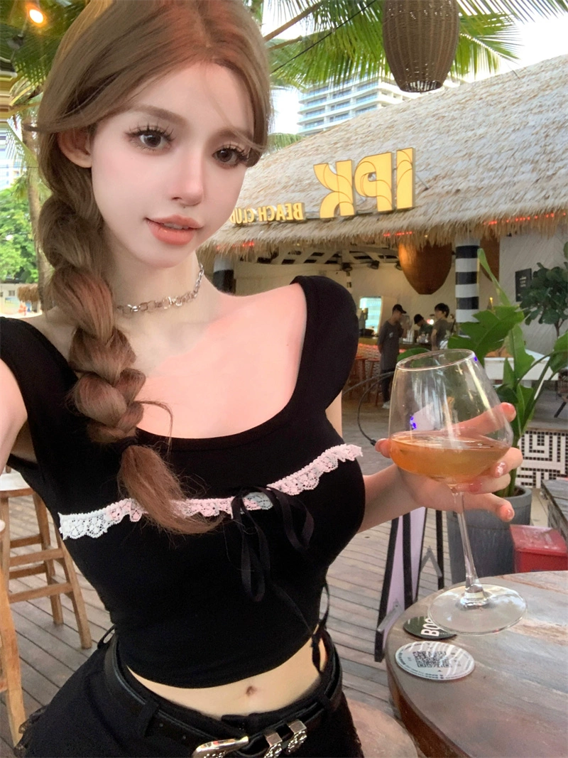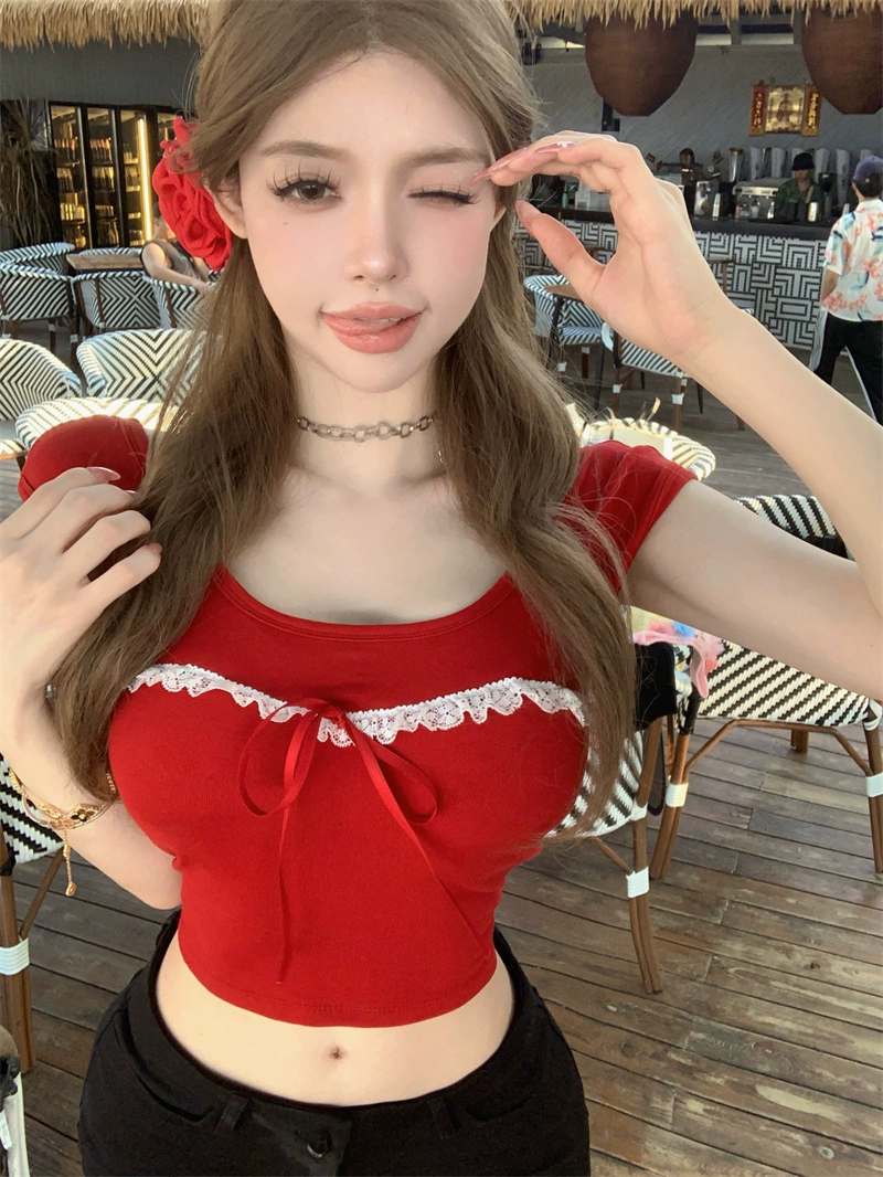 | nameOriginal | Lace short-sleeved T-shirt summer slim top with bow |