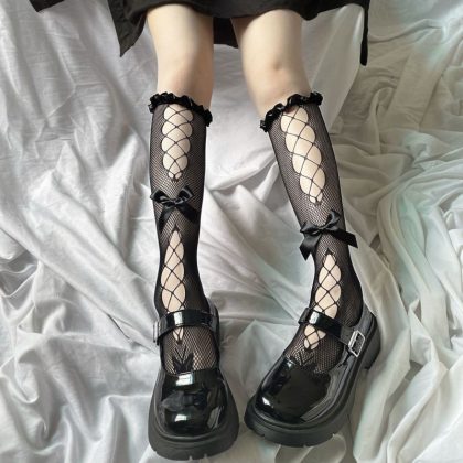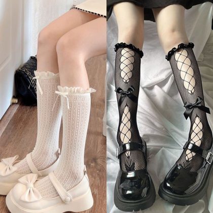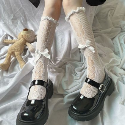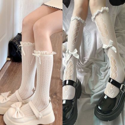| nameOriginal | Lace socks French spring and summer thin lolita lace calf milk white Japanese bow hollow-out mid-calf socks |