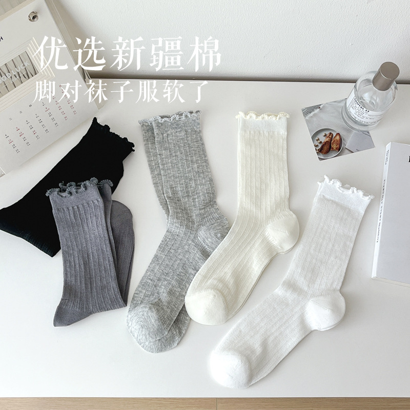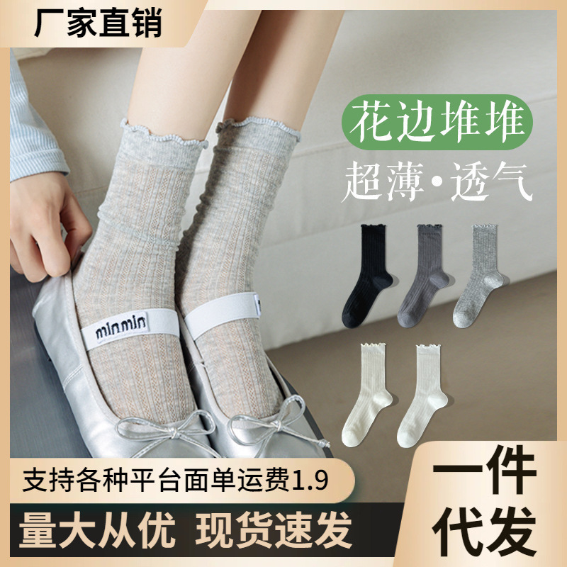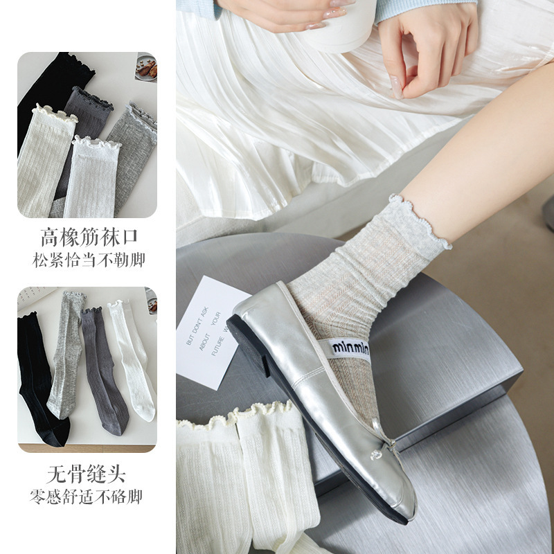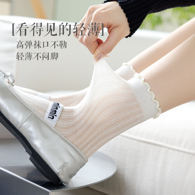 | nameOriginal | Lace socks mid-tube spring and summer women's thin breathable mesh miu wind Lolita socks white piled socks |