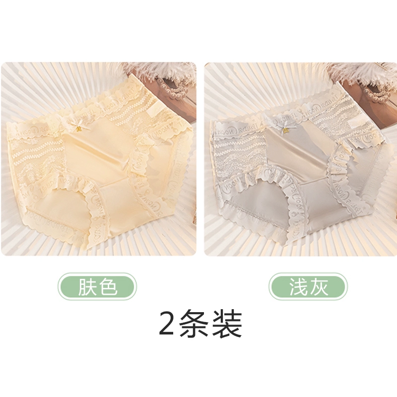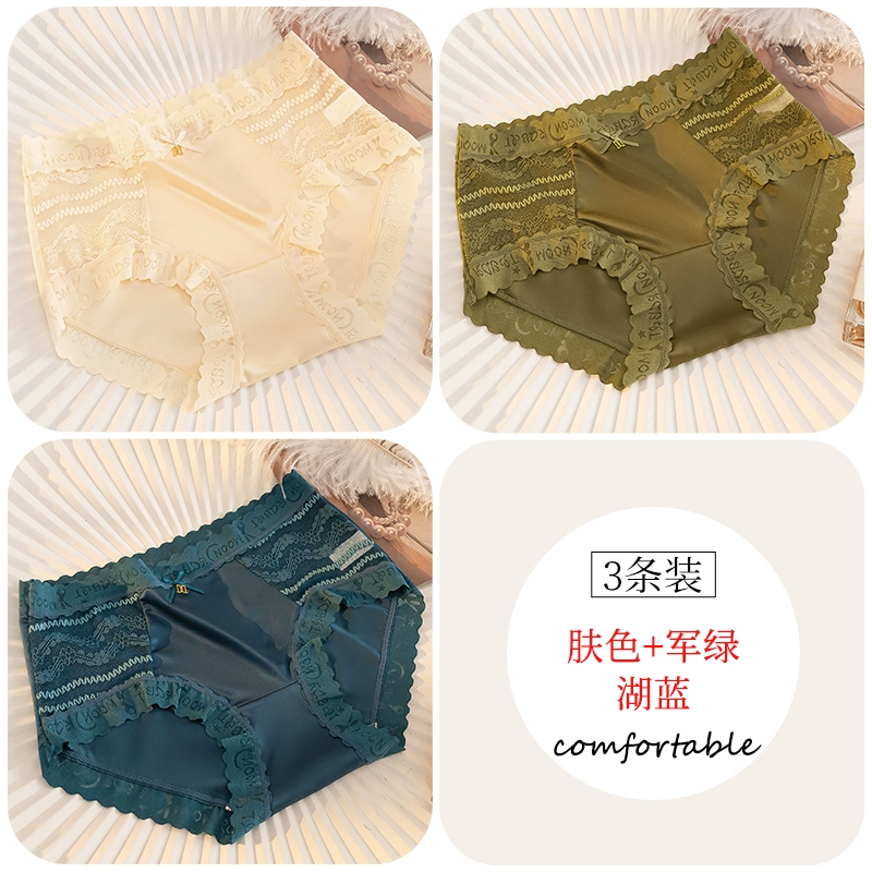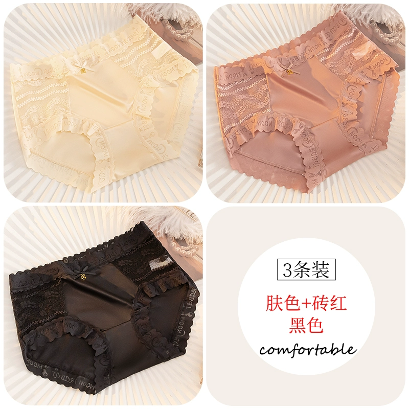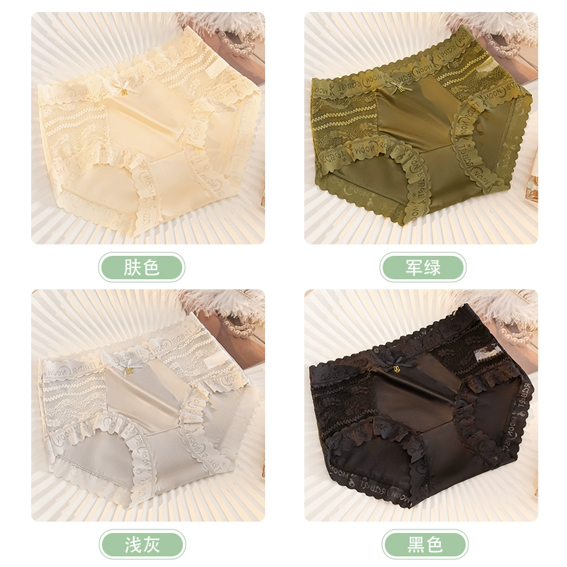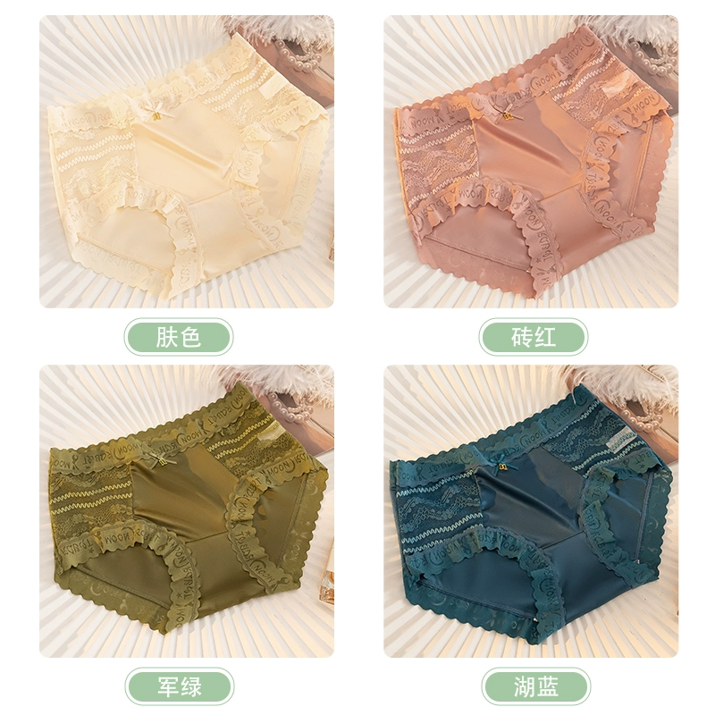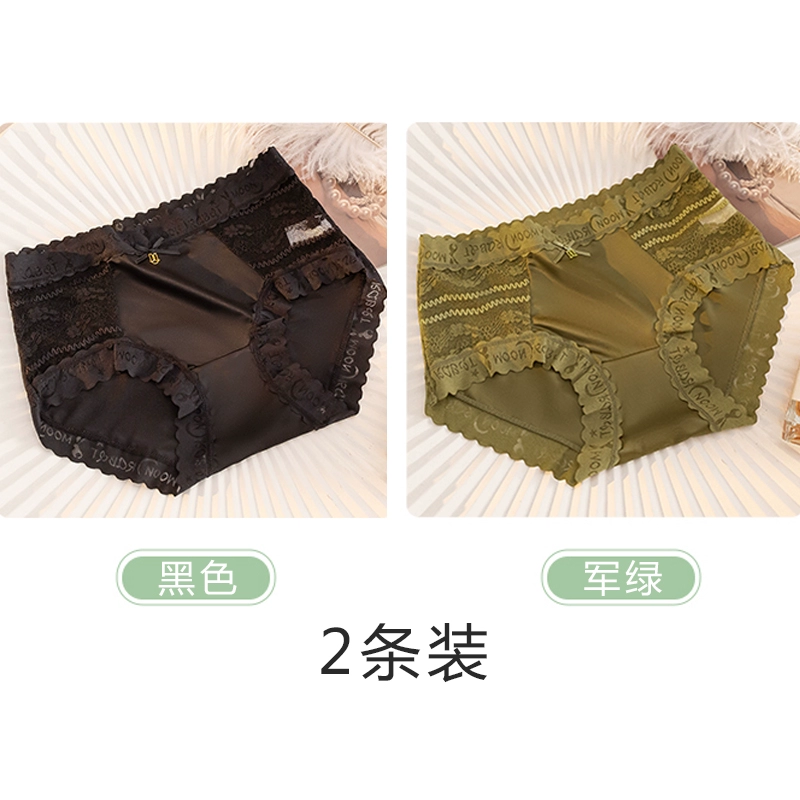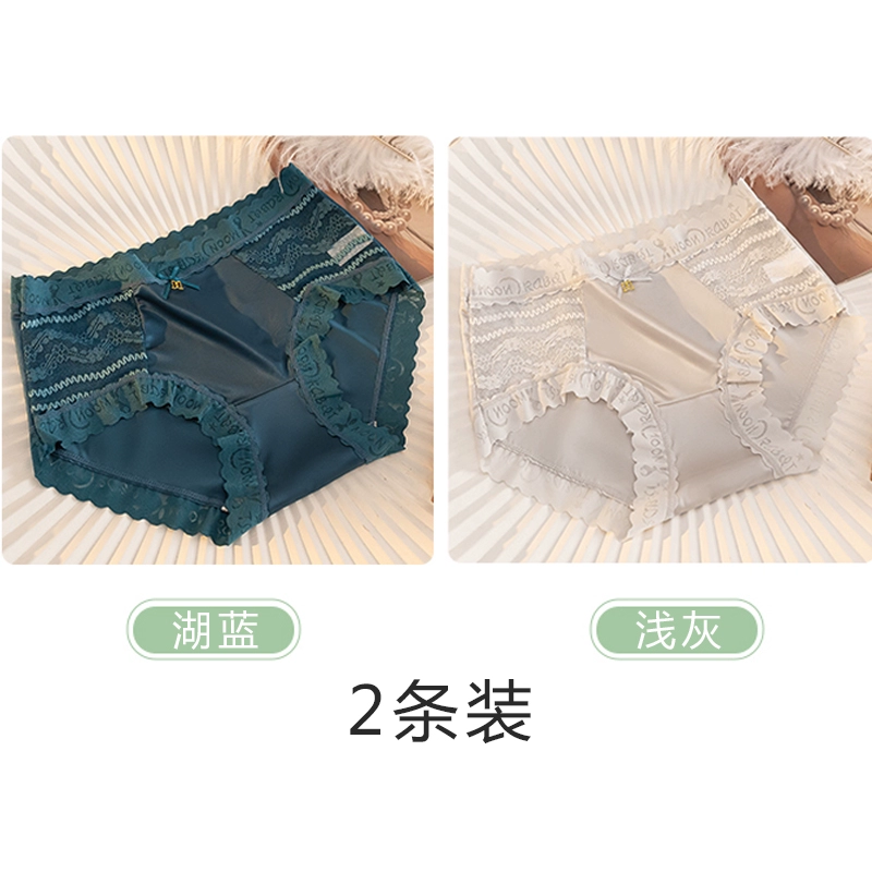 | nameOriginal | Lace spliced silk underwear for women, antibacterial, traceless ice silk, cool and sexy new style, mid-high waist briefs. |
