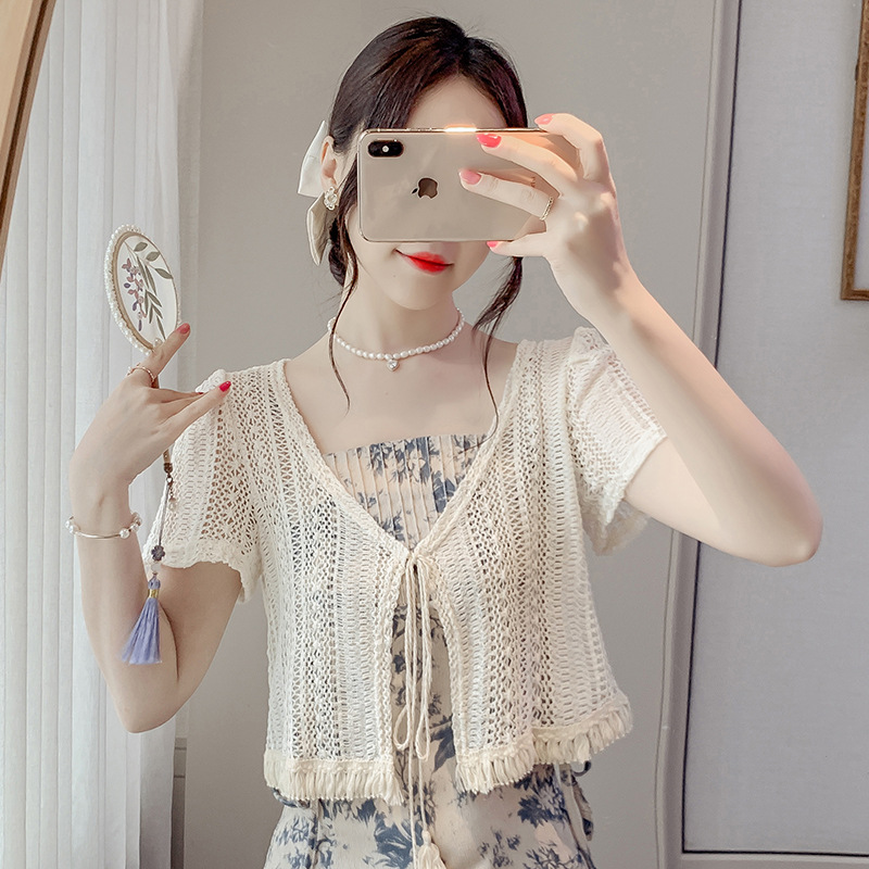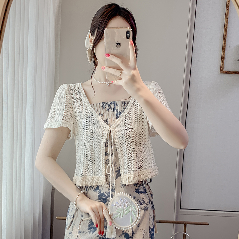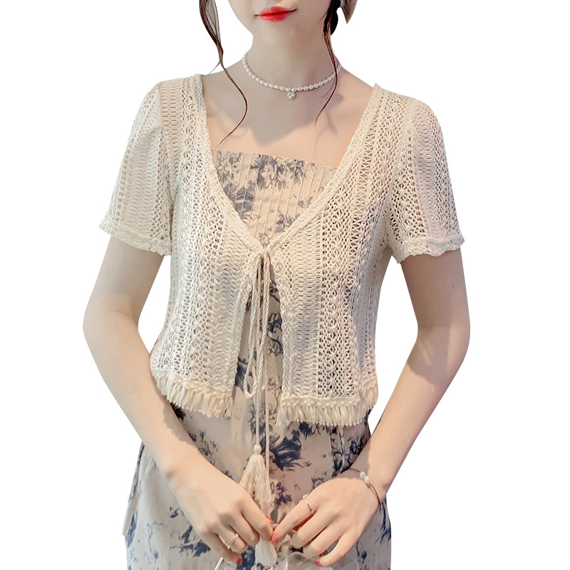 | nameOriginal | Lace Stitching Hollow-out Sun Protection Cardigan Top Women's 2024 Summer Thin Outer Shawl Short Jacket |