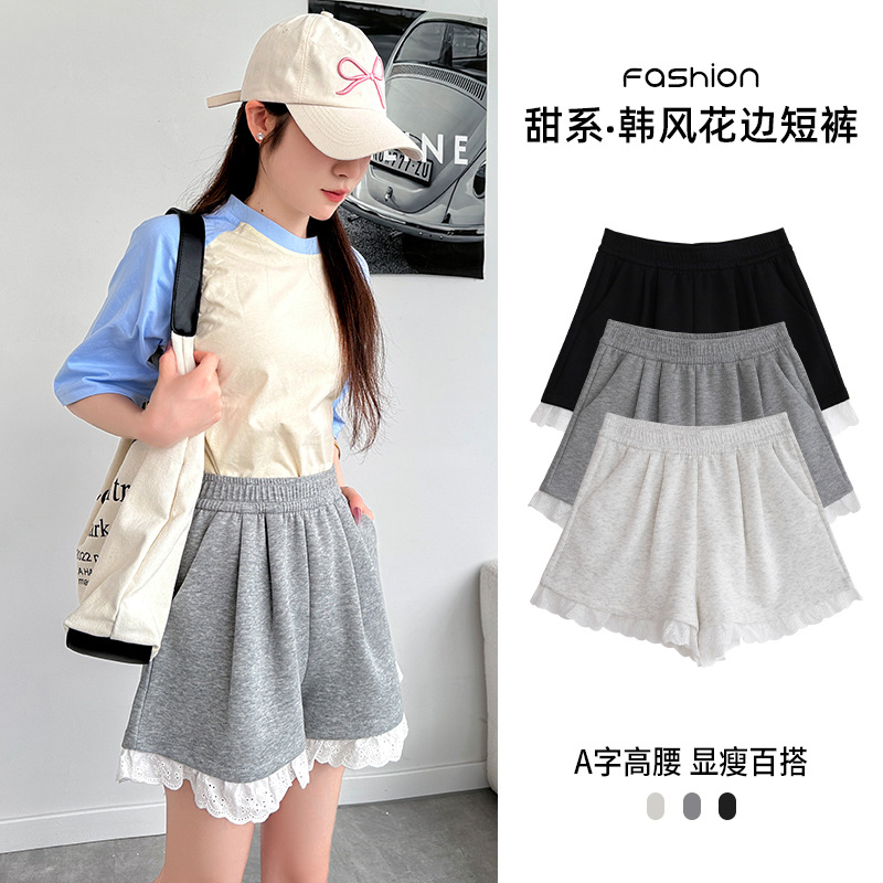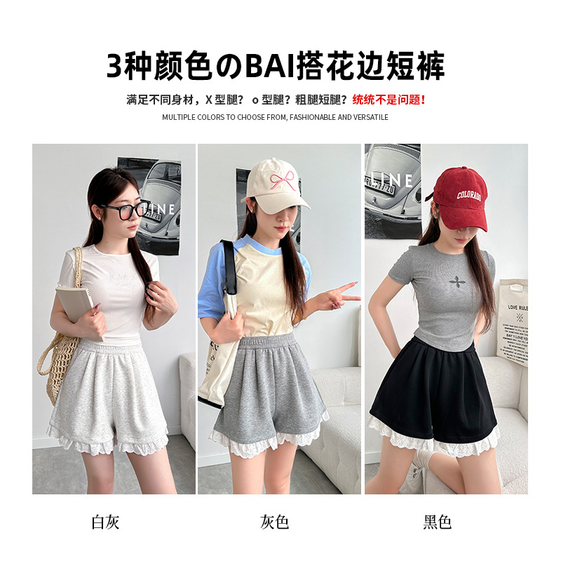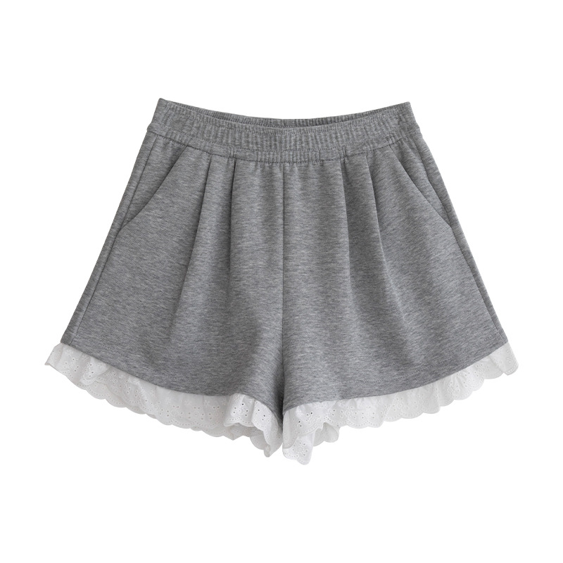 | nameOriginal | Lace Stitching Shorts Women's Summer 2024 New High Waist Casual Korean Style Design Sense Sports Wide Leg Pants |