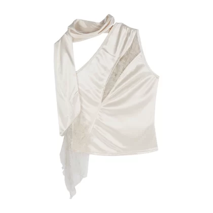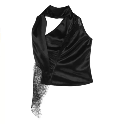 nameOriginal | Lace stitching slanted shoulder hollow black halterneck strap |