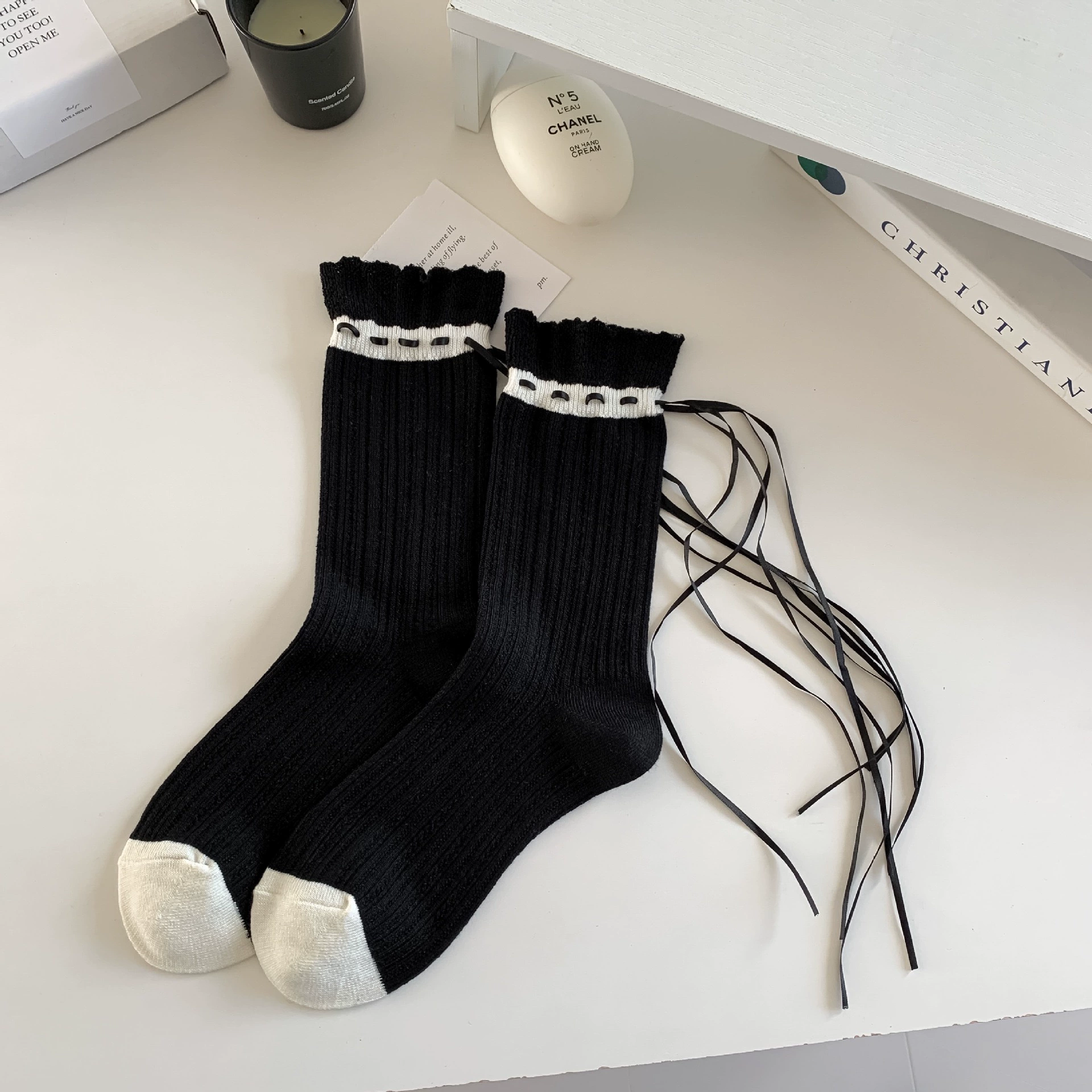 | nameOriginal | Lace-style strappy black and white ins trendy socks for women |