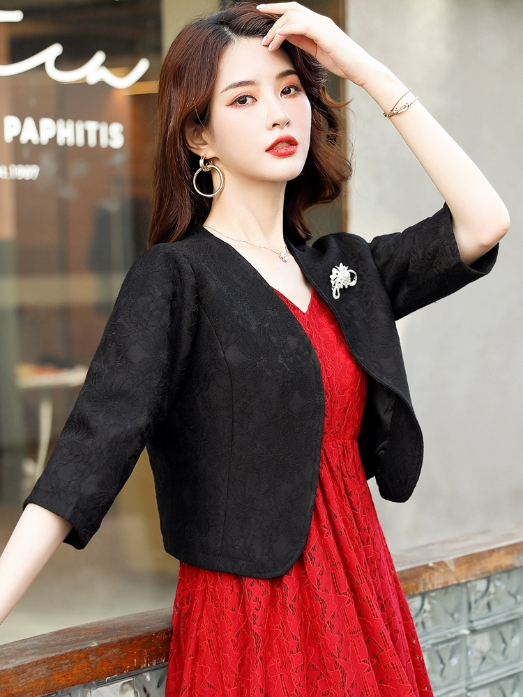 | nameOriginal | Lace suit women's short 2024 spring and autumn new style shawl short coat waistcoat with cheongsam skirt and cardigan |