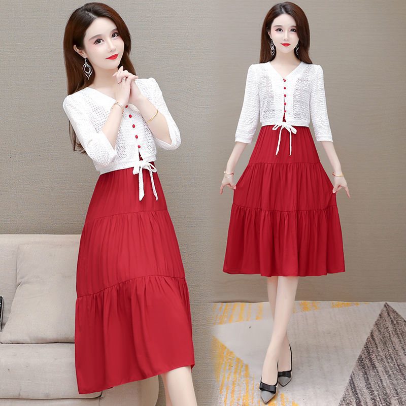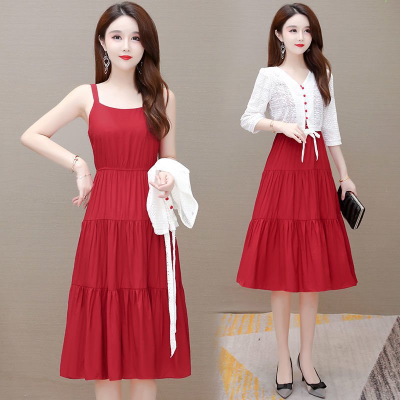 | nameOriginal | Lace Sunscreen Shawl Two-piece Set Long dress 2022 New Summer Women's Belly-covering Slimming Sling Skirt |