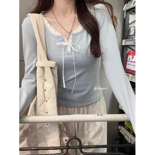 | nameOriginal | Lace sweet and spicy long-sleeved tops for women 2024 new early spring small slim slim design bottoming shirt T-shirt |